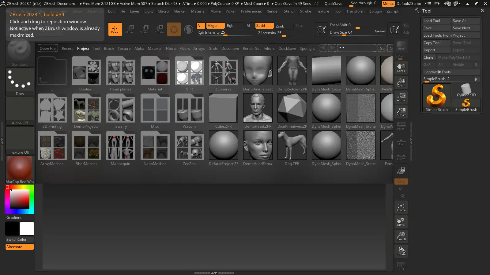 - Режим DynaMesh для динамического перераспределения геометрии в процессе лепки