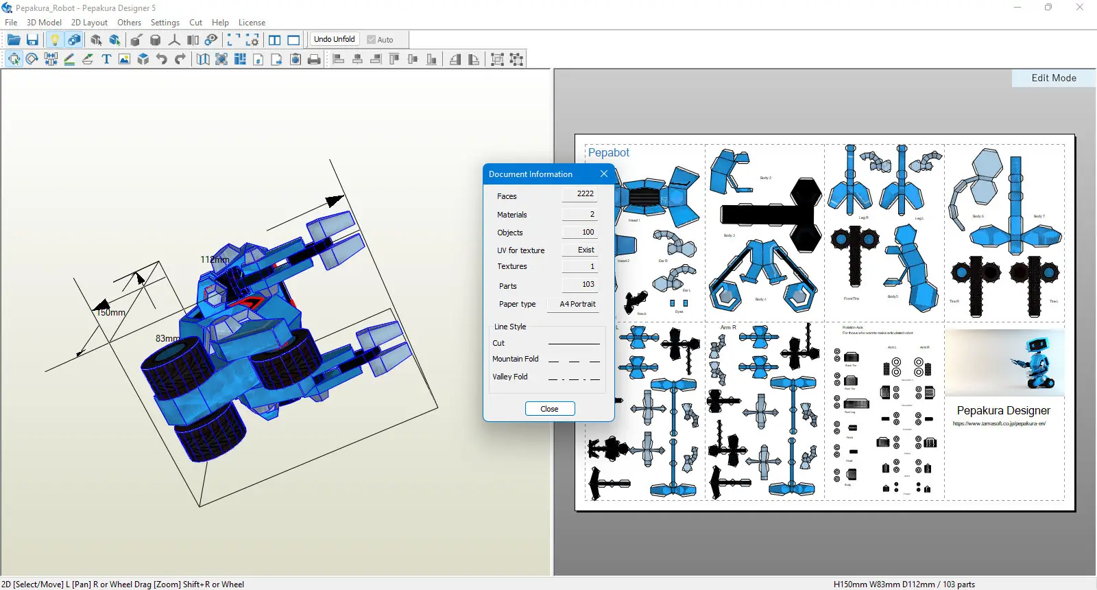 Pepakura Designer — это специализированное программное обеспечение для создания разверток трехмерных моделей с целью последующего изготовления бумажных копий. Программа преобразует 3D-модели из популярных форматов в плоские выкройки, которые можно распечатать и собрать вручную. Поддержка множества форматов и интуитивный интерфейс делают её незаменимой для любителей моделизма и цифрового творчества.
