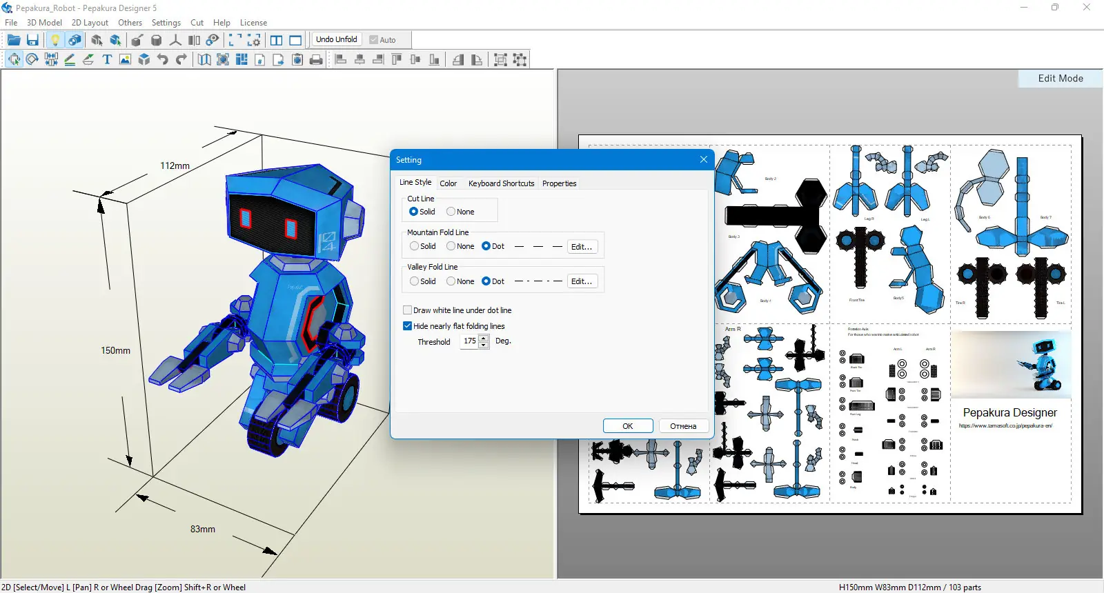 Pepakura Designer предназначена для пользователей, увлекающихся созданием бумажных моделей на основе цифровых 3D-проектов. Программа позволяет импортировать трехмерные объекты из файлов форматов 3DS, DXF, OBJ, STL и других, после чего автоматически генерирует развертки, пригодные для печати. Каждая деталь снабжается линиями сгиба, метками соединения и нумерацией, что упрощает сборку финальной модели.