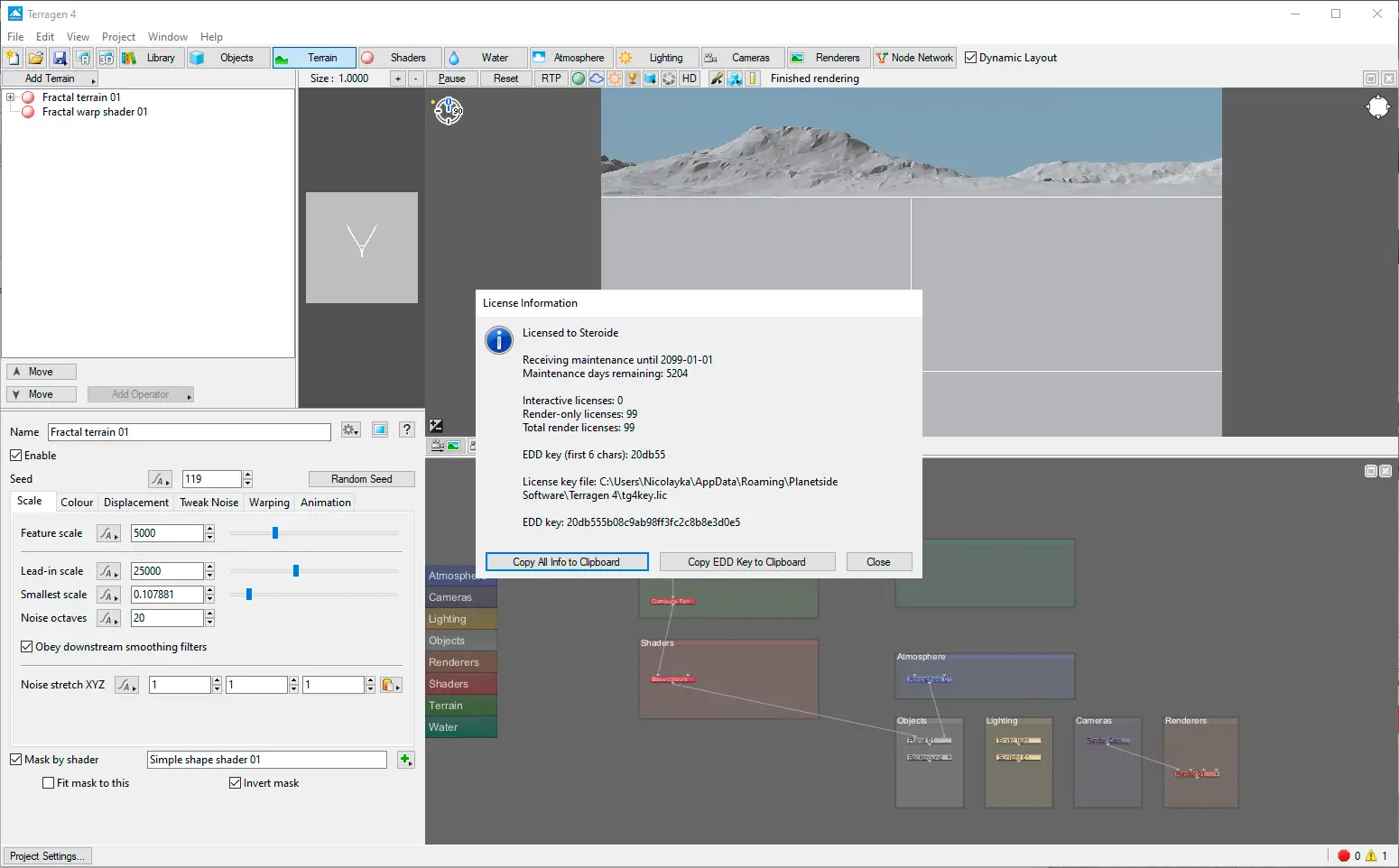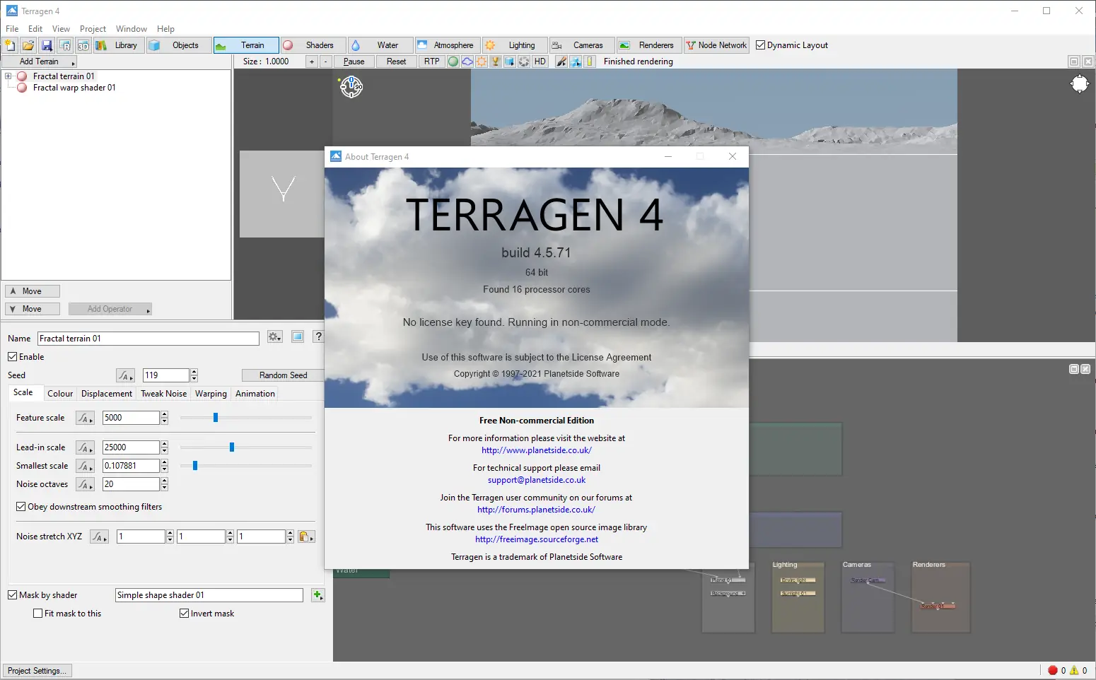 Программа Terragen доступна для установки на современных версиях операционной системы Windows, включая 7, 8.1, 10 и 11, как в 32-, так и в 64-битных конфигурациях. Установка не требует сложных манипуляций, однако для активации всех функций необходимо корректно настроить лицензию. Процесс активации включает запуск вспомогательного файла из папки Crack для генерации ключа или использование уже готового файла лицензии. После указания пути к лицензии в интерфейсе программы, она запускается в полном режиме, готовая к использованию. Версия 4 включает все обновления и улучшения, в том числе оптимизацию под современные массажер-процессоры, что значительно ускоряет расчёты при визуализации сложных сцен.