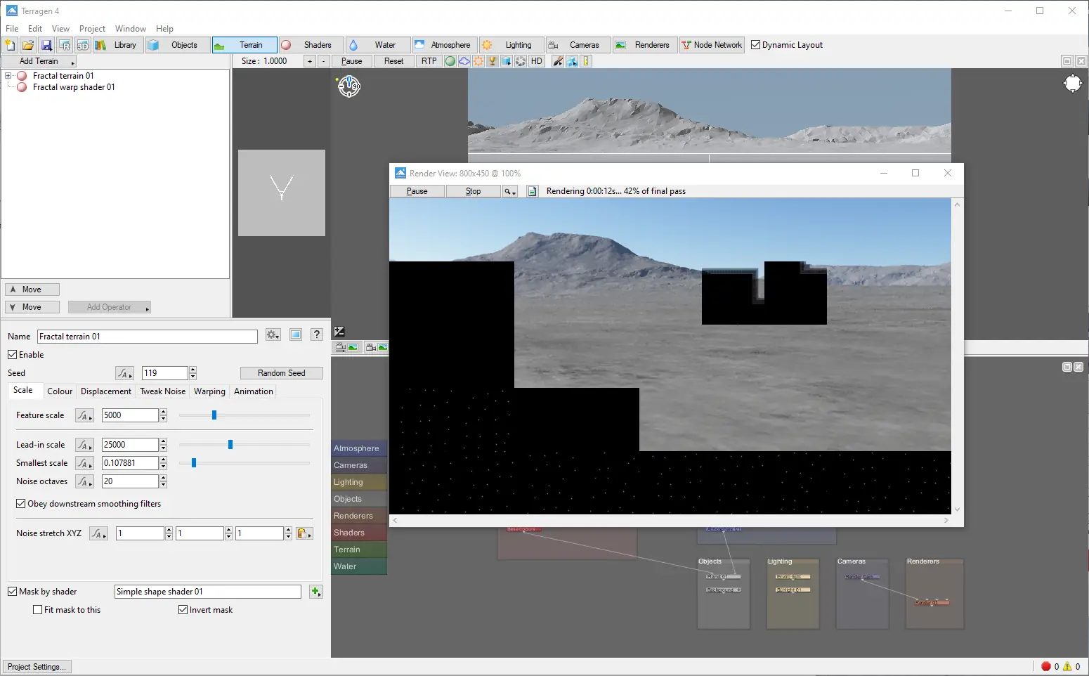 Каждый элемент сцены в Terragen поддаётся глубокой настройке, что делает её мощным инструментом для визуальных художников и визуализаторов.