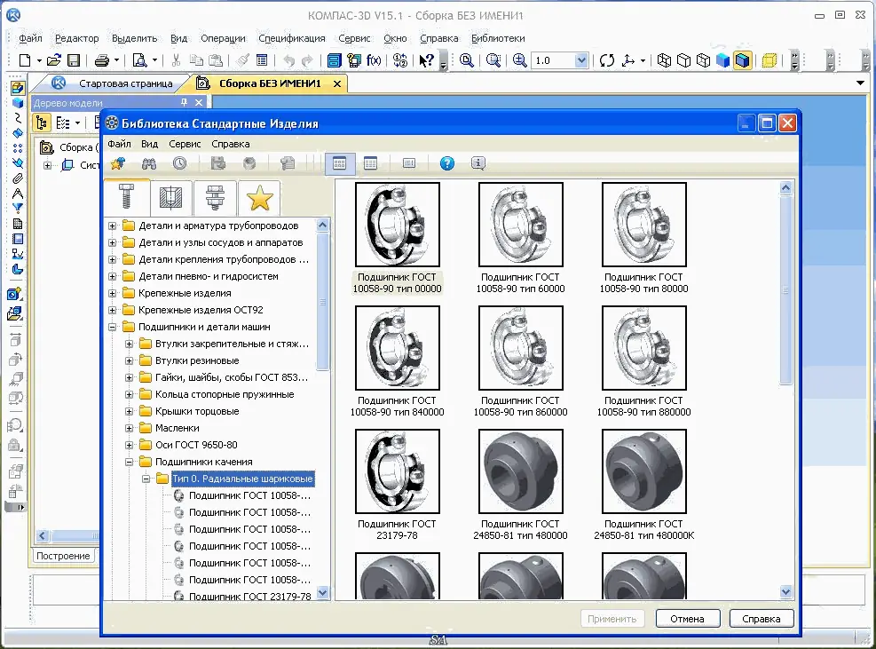 - Наличие расширенных библиотек стандартных изделий: крепёж, подшипники, трубопроводная арматура, уплотнения