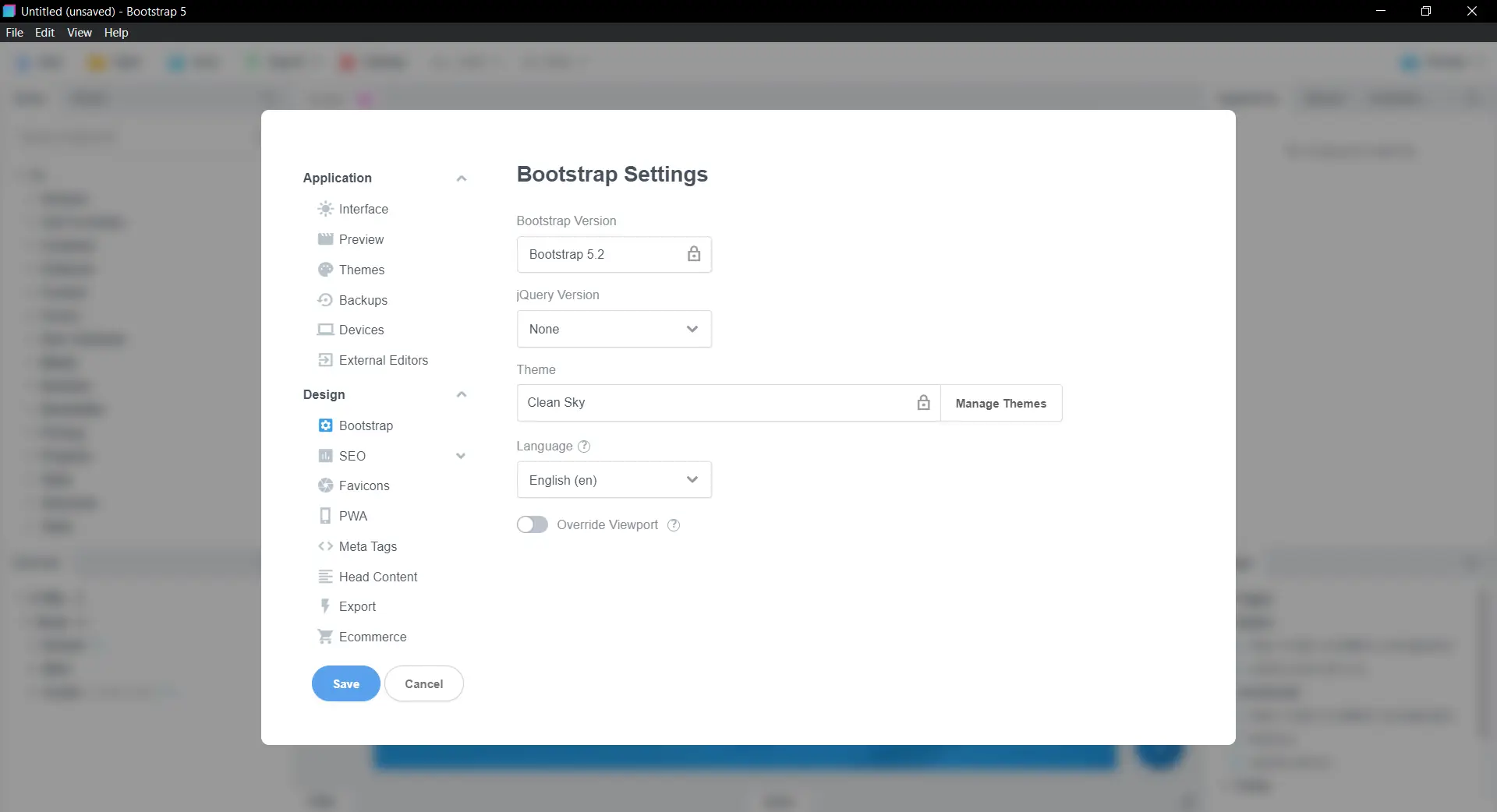 - Поддержка Bootstrap 5.2.3 с возможностью быстрого импорта шаблонов и существующих веб-сайтов.