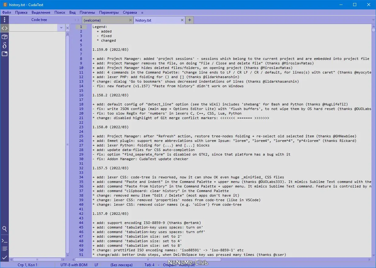 CudaText — это легковесный, но мощный мультиплатформенный редактор кода с открытым исходным кодом, разработанный для программистов, которым нужна высокая производительность и гибкость. Программа поддерживает синтаксис более чем 150 языков, включает встроенные инструменты для автозавершения, поиска и замены, а также работает без установки, что делает её идеальной для использования на различных устройствах. Благодаря поддержке плагинов и настраиваемому интерфейсу, CudaText подходит как для начинающих, так и для опытных разработчиков.