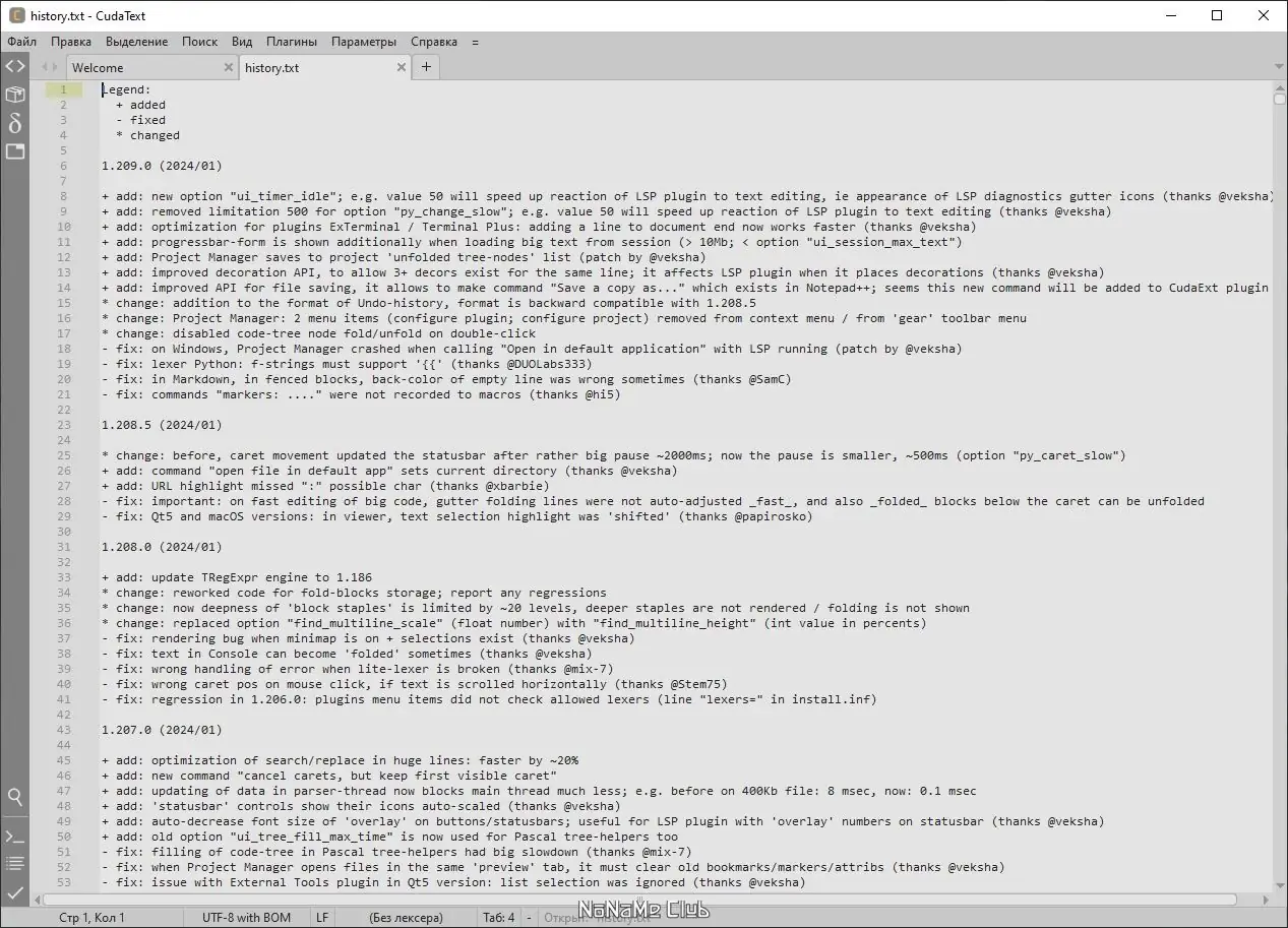 CudaText — это бесплатный, кроссплатформенный редактор кода с поддержкой множества языков программирования, встроенной подсветкой синтаксиса и возможностью расширения функционала через плагины. Программа подходит как для начинающих разработчиков, так и для профессионалов, обеспечивая удобную работу с текстом, настройку интерфейса и высокую производительность. Благодаря портативной версии, её можно использовать без установки, запуская с любого носителя.