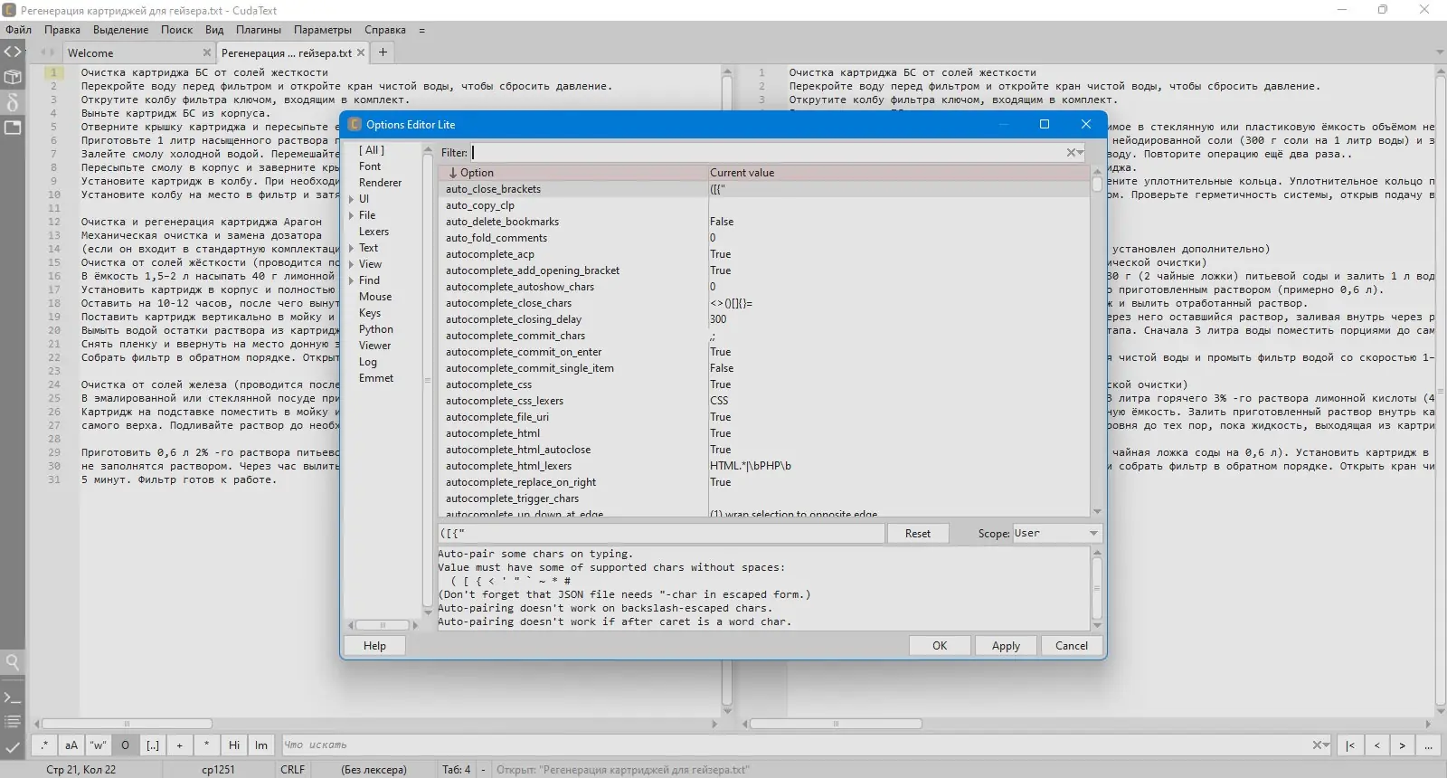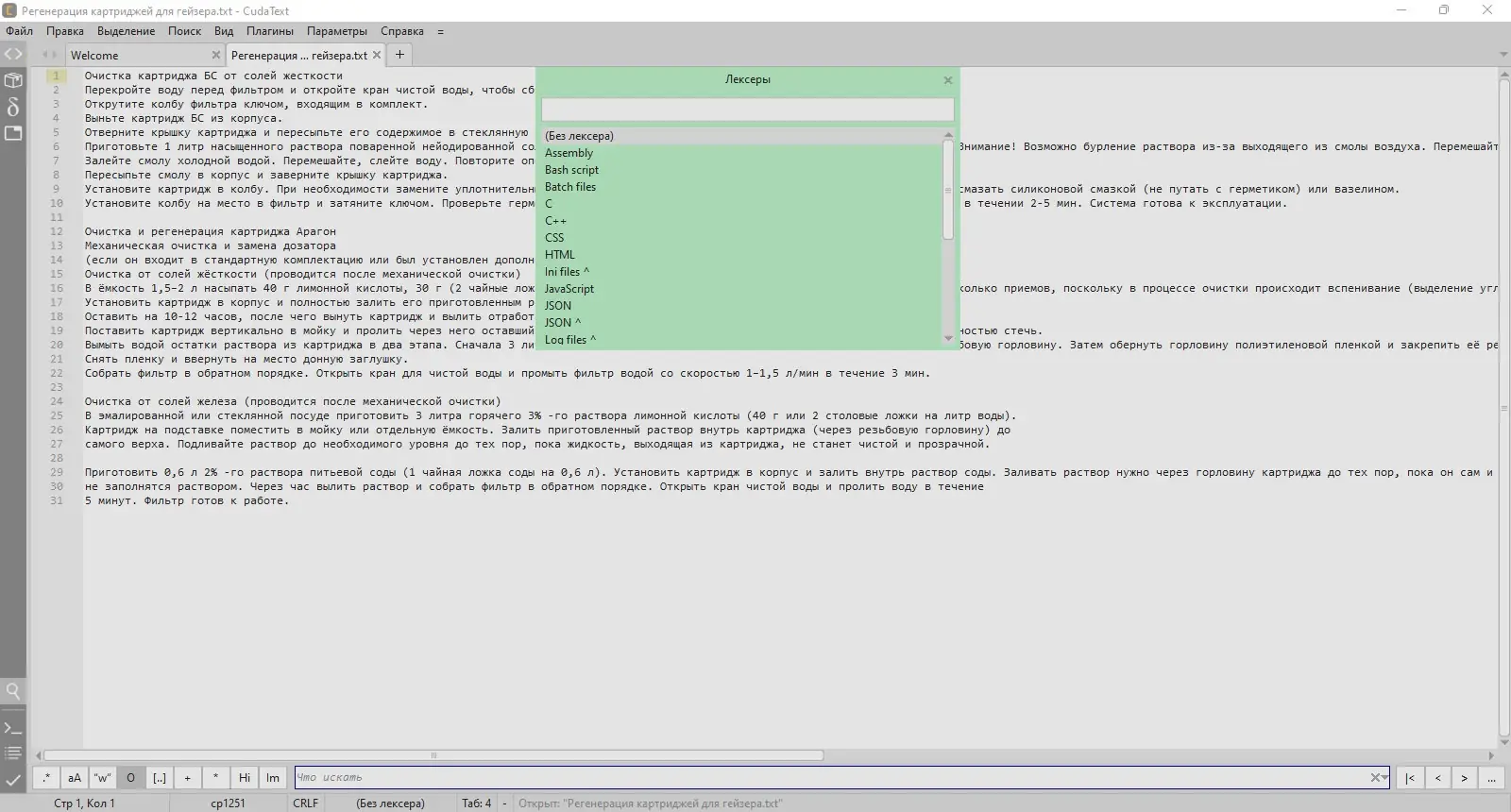Программа CudaText разрабатывалась как лёгкий и функциональный редактор, ориентированный в первую очередь на программистов. Он поддерживает множество языков, включая Python, JavaScript, PHP, HTML, CSS, C++, Java и другие, обеспечивая качественную подсветку синтаксиса и удобное чтение кода. Интерфейс легко адаптируется под нужды пользователя: можно настраивать шрифты, цветовые схемы и панели инструментов. Работа с кодом упрощается благодаря функциям автозавершения, сворачивания блоков и отображения непечатаемых символов.