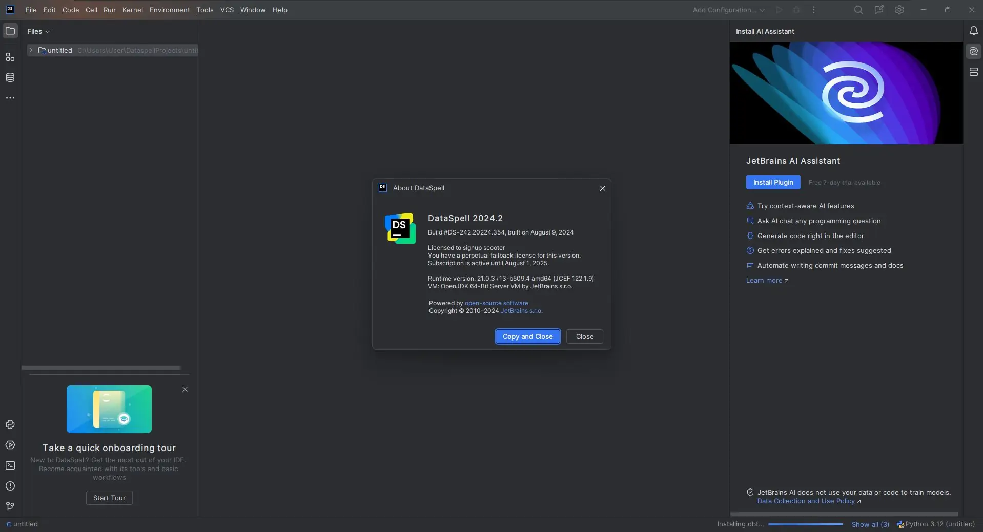 JetBrains DataSpell доступен для установки на современных версиях Windows. Программа предлагает стабильную работу с различными форматами данных и инструментами анализа. Поддержка Conda, SQL, Markdown и интерактивных результатов делает её универсальной средой для научных и промышленных проектов. Установка осуществляется через официальный инсталлятор с автоматической активацией. После завершения установки рекомендуется дать системе несколько минут для завершения фоновых процессов перед первым запуском.