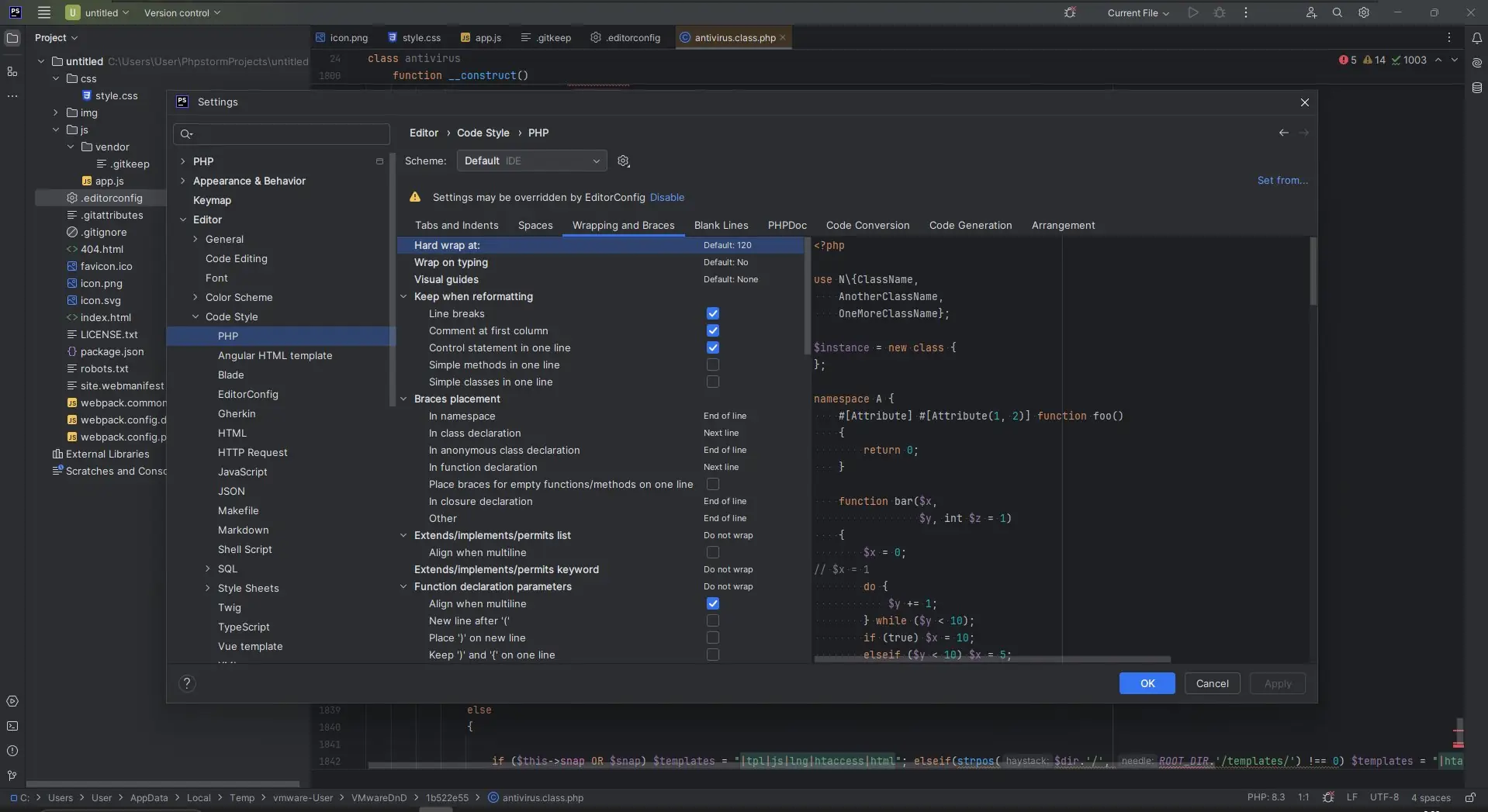 PhpStorm сочетает в себе функциональность WebStorm и специализированные инструменты для PHP, создавая целостную среду разработки.