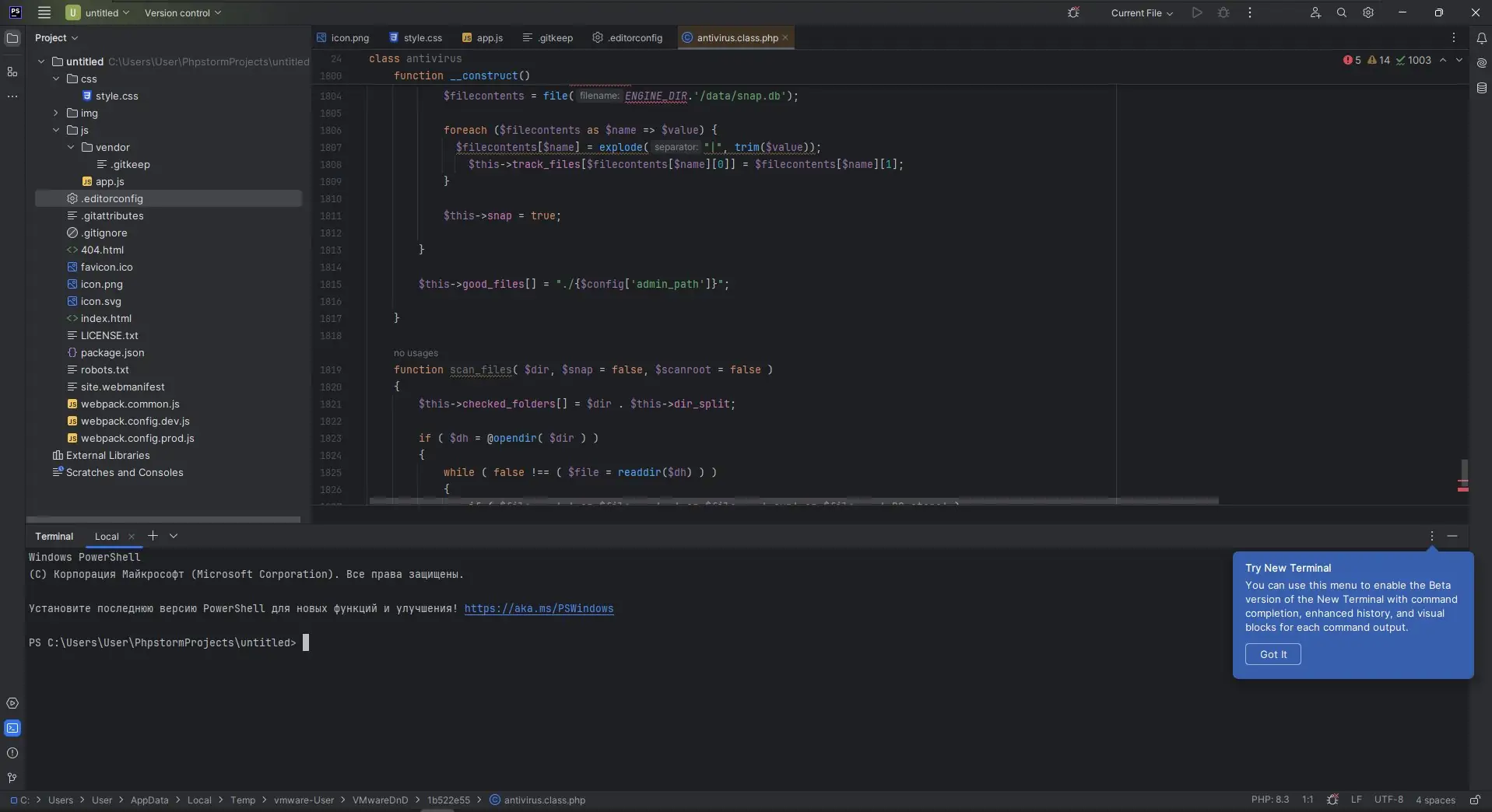 - Глубокая интеграция с PHP и фронтенд-технологиями, включая JavaScript, TypeScript и препроцессоры стилей.