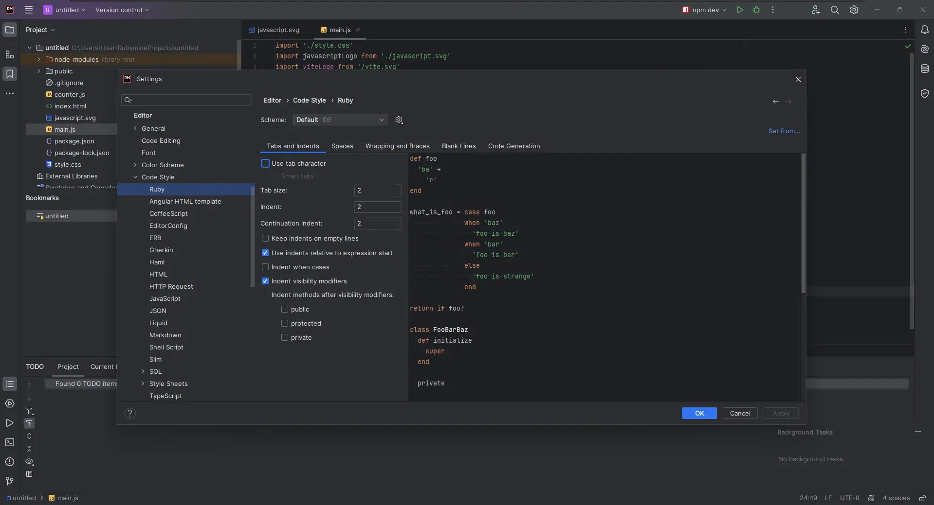 - Поддержка тестовых фреймворков RSpec, Cucumber, MiniTest и других с визуальным интерфейсом запуска и анализа