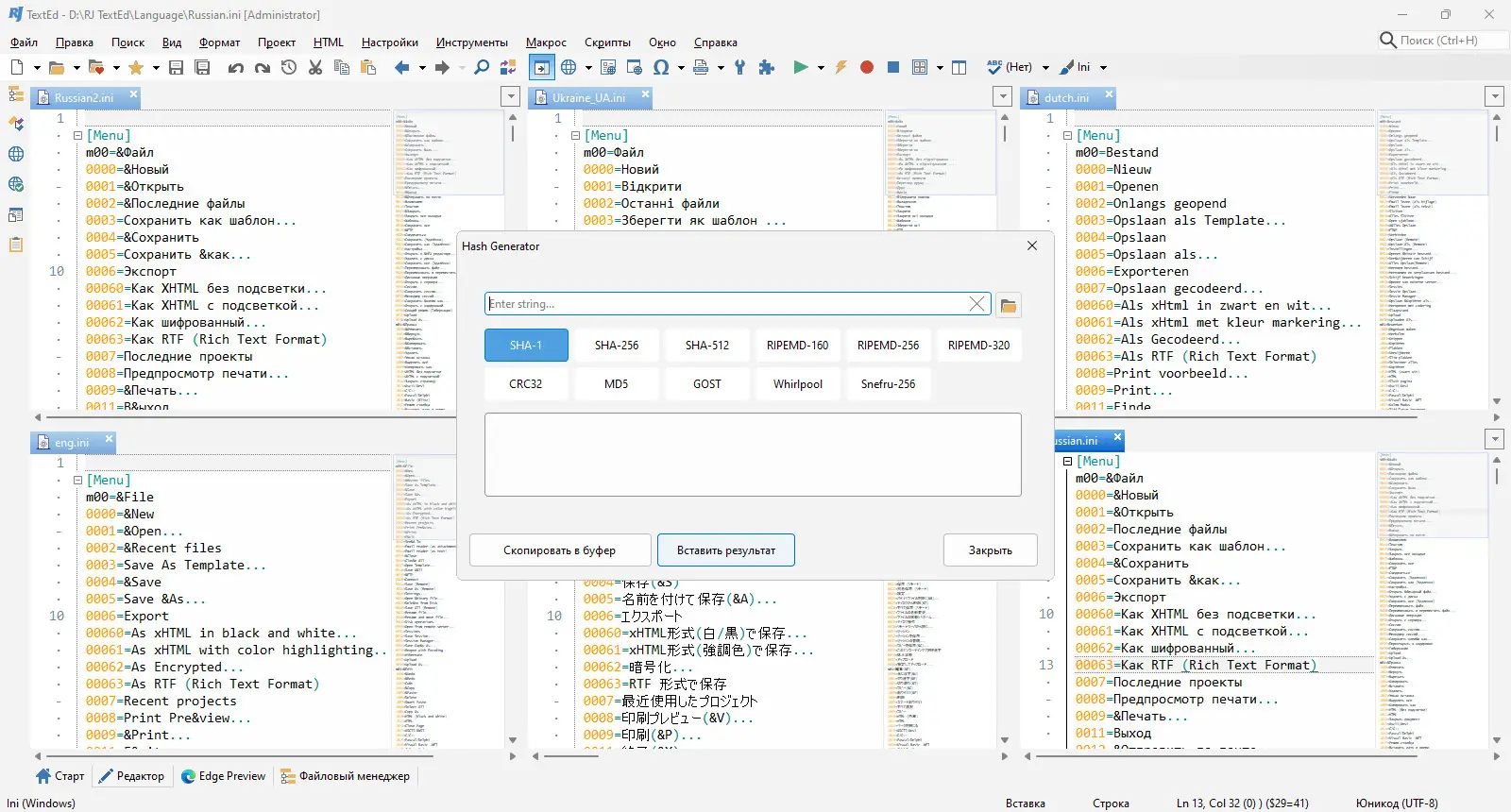 RJ TextEd предоставляет широкий набор инструментов, необходимых для качественной разработки и редактирования текстовых и программных файлов. Редактор поддерживает работу с кодировками ANSI, UTF-8, Unicode и Unicode Big Endian, что обеспечивает корректное отображение текста в различных системах и при переносе между платформами. Возможность автоматического определения кодовой страницы позволяет избежать искажений при открытии файлов, созданных в других средах. Это особенно полезно при совместной работе над проектами или при редактировании стороннего кода.
