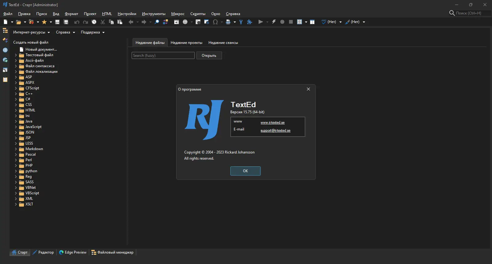RJ TextEd — это мощный текстовый редактор, ориентированный на разработчиков и веб-мастеров, с поддержкой множества языков программирования, встроенной подсветкой синтаксиса и расширенными возможностями редактирования кода. Программа поддерживает работу с различными кодировками, включая UTF-8, Unicode и ANSI, обеспечивая корректное отображение текста в любых проектах. Удобный интерфейс, настраиваемые панели и встроенные инструменты делают процесс написания кода более эффективным и комфортным.