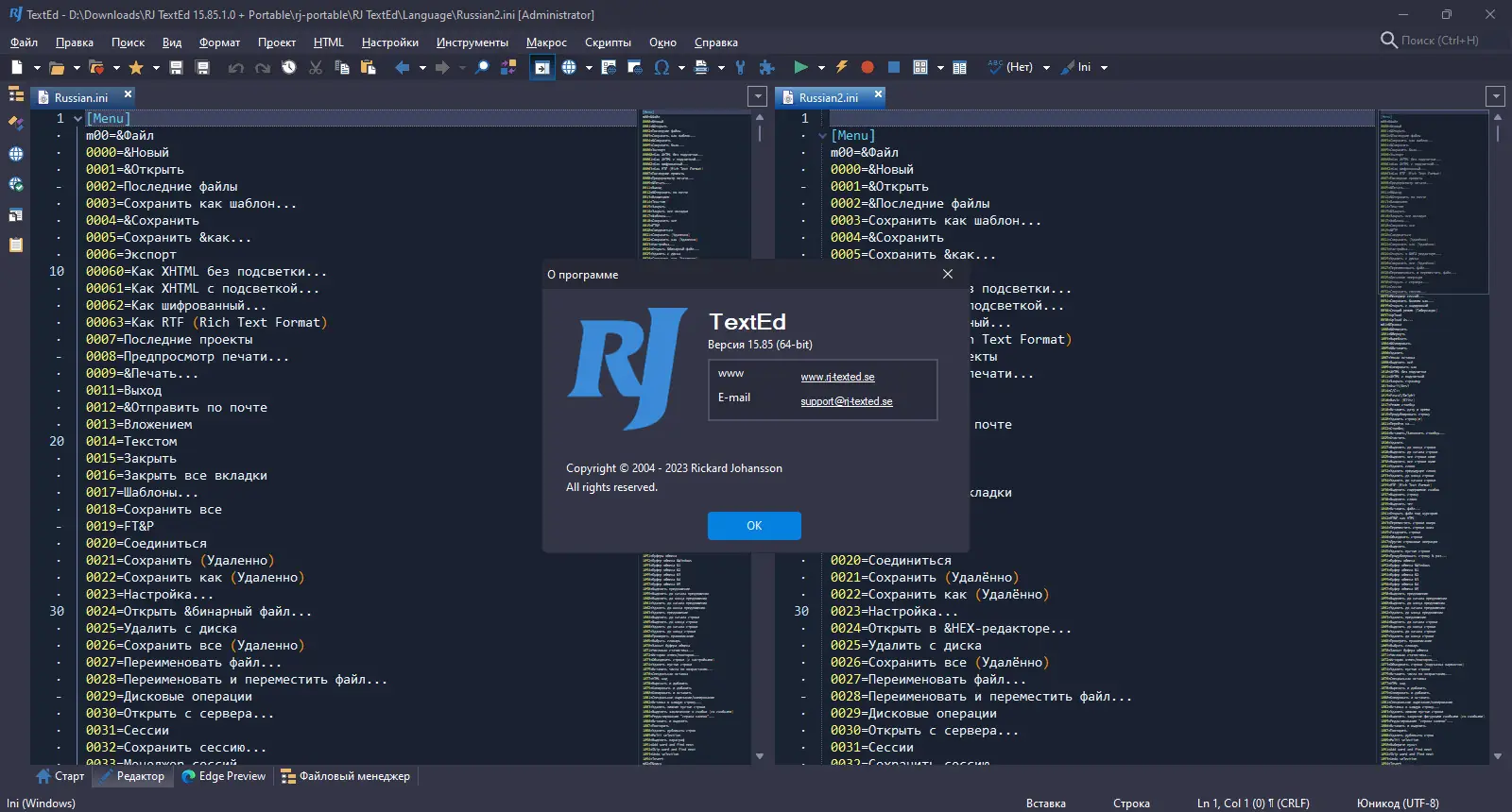 RJ TextEd — это универсальный текстовый редактор, предназначенный для разработчиков и веб-мастеров, сочетающий в себе мощные инструменты редактирования кода, поддержку множества языков программирования и удобные функции для повседневной работы с текстовыми и бинарными файлами. Программа предлагает продвинутую подсветку синтаксиса, работу с кодировками, встроенный FTP-клиент и режим предпросмотра HTML. Благодаря своей гибкости и расширяемости, RJ TextEd подходит как для начинающих, так и для профессиональных программистов.
