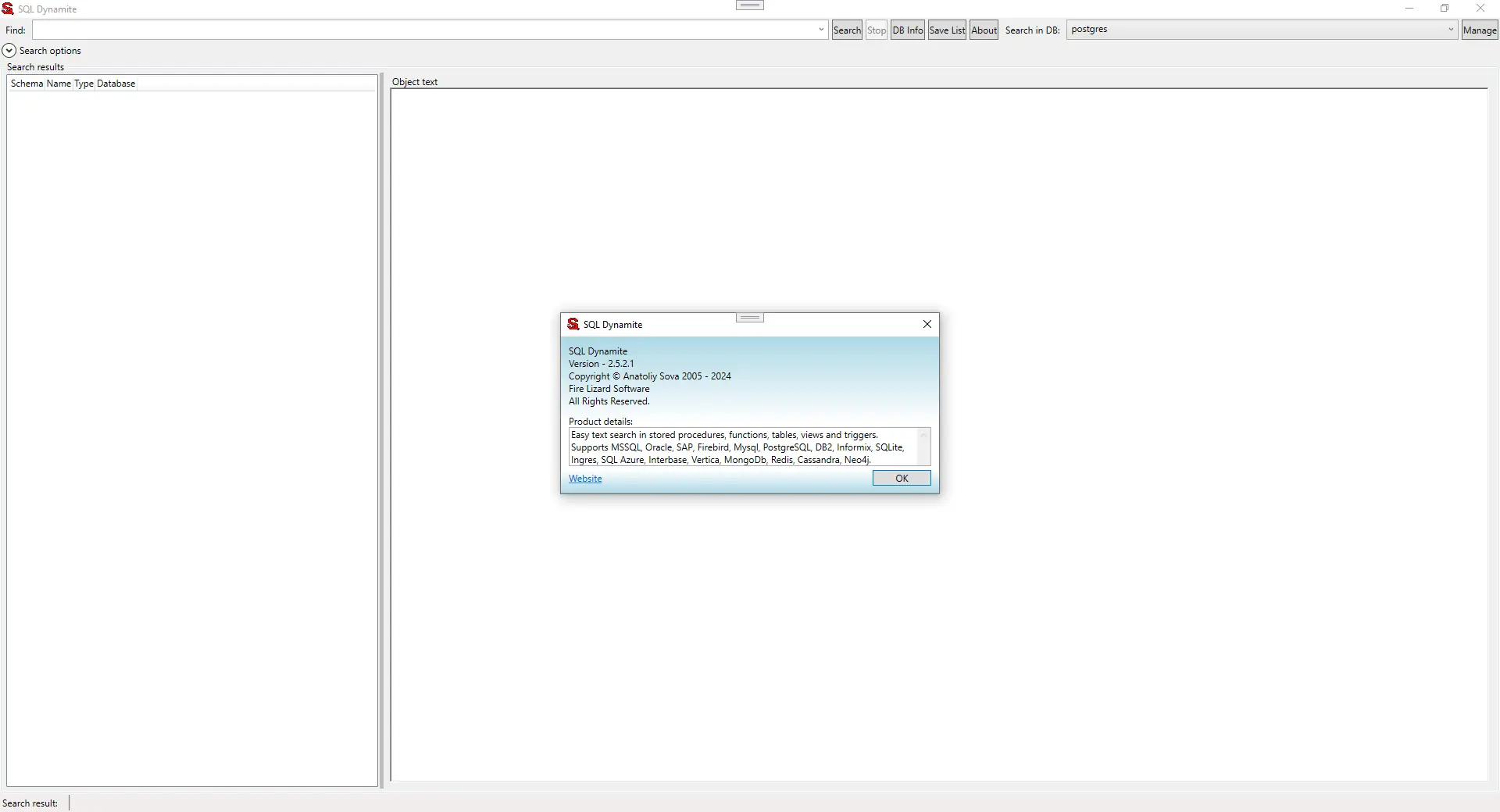 SQL Dynamite — мощный инструмент для анализа и поиска в объектах реляционных и нереляционных баз данных, обеспечивающий высокую точность и скорость обнаружения нужных фрагментов кода или имен объектов. Программа поддерживает широкий спектр СУБД, включая MSSQL, Oracle, PostgreSQL, MySQL, MongoDB и другие, позволяя пользователям эффективно исследовать структуры баз данных. Возможность поиска как по содержимому, так и по именам объектов делает её незаменимой при рефакторинге, аудите или миграции баз данных.