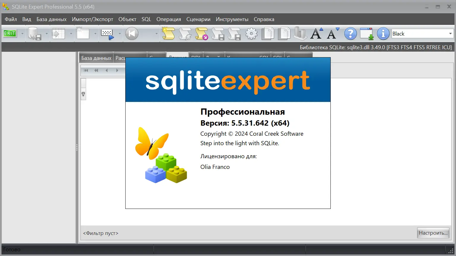 SQLite Expert Professional — это мощный инструмент для визуального управления базами данных SQLite3 с интуитивным интерфейсом и широким набором функций. Программа подходит как для новичков, так и для опытных разработчиков, позволяя легко создавать, редактировать и обслуживать базы данных. Она обеспечивает полный контроль над структурой и содержимым таблиц, включая работу с BLOB-данными и графическими полями.