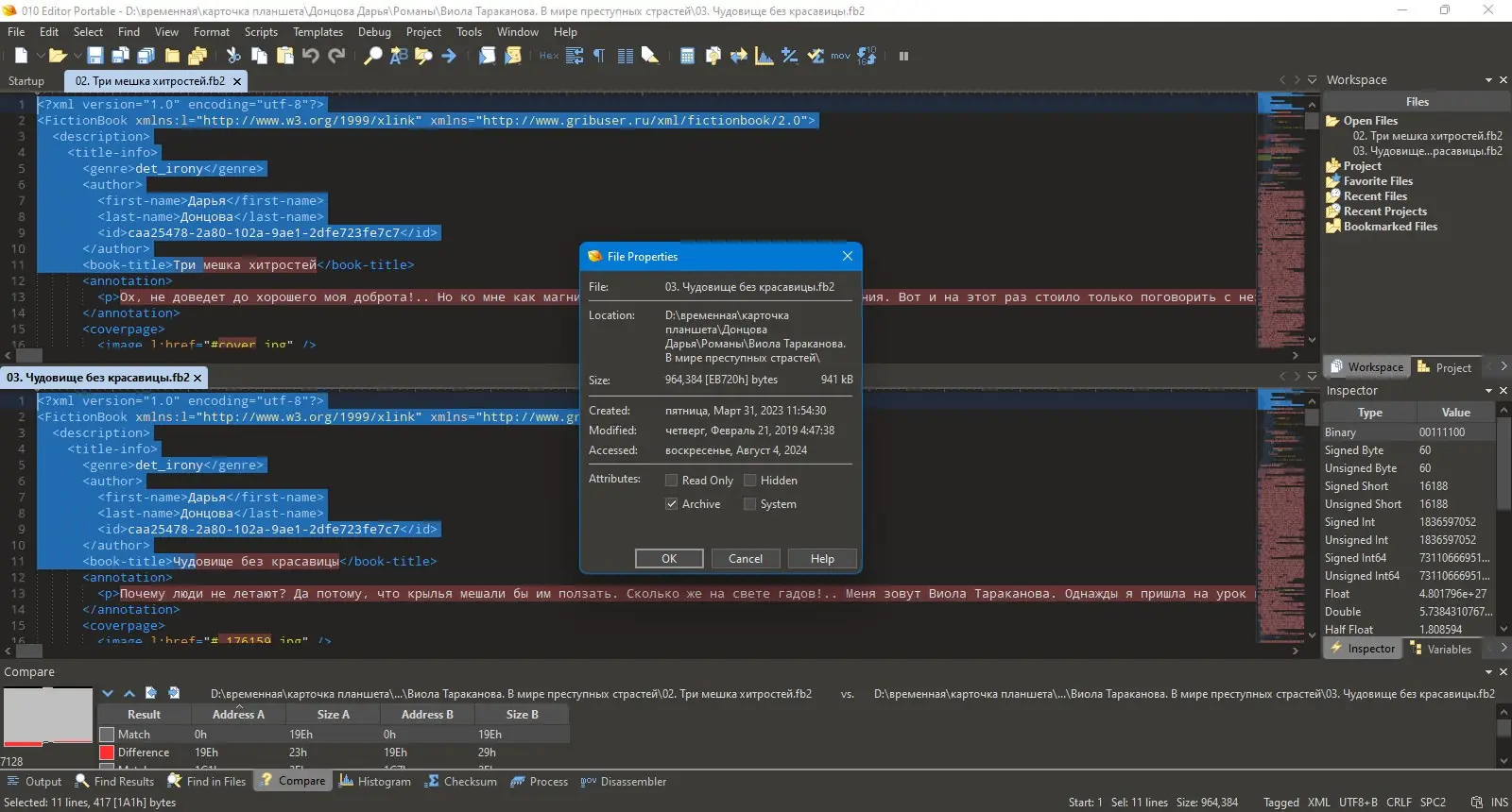 - Поддержка редактирования двоичных данных на уровне байтов с возможностью отмены любого числа действий