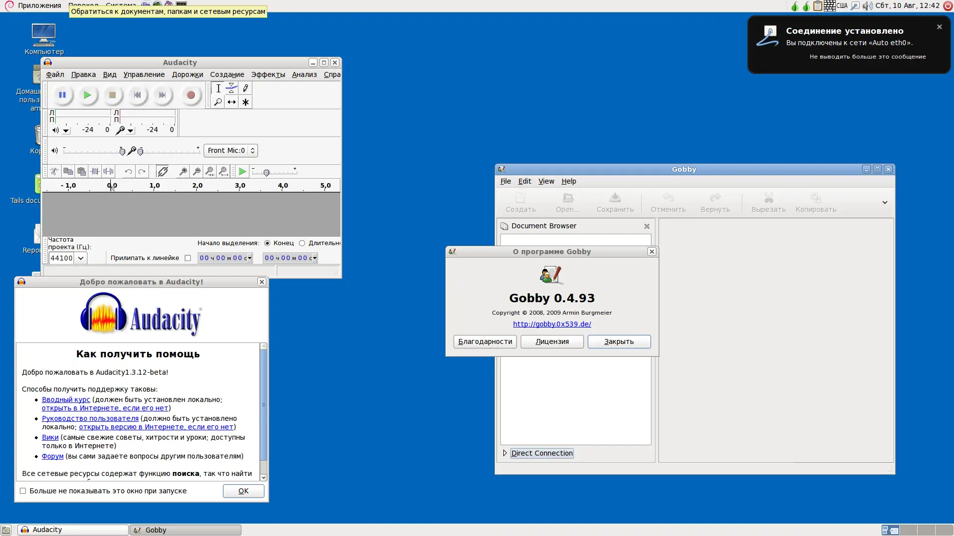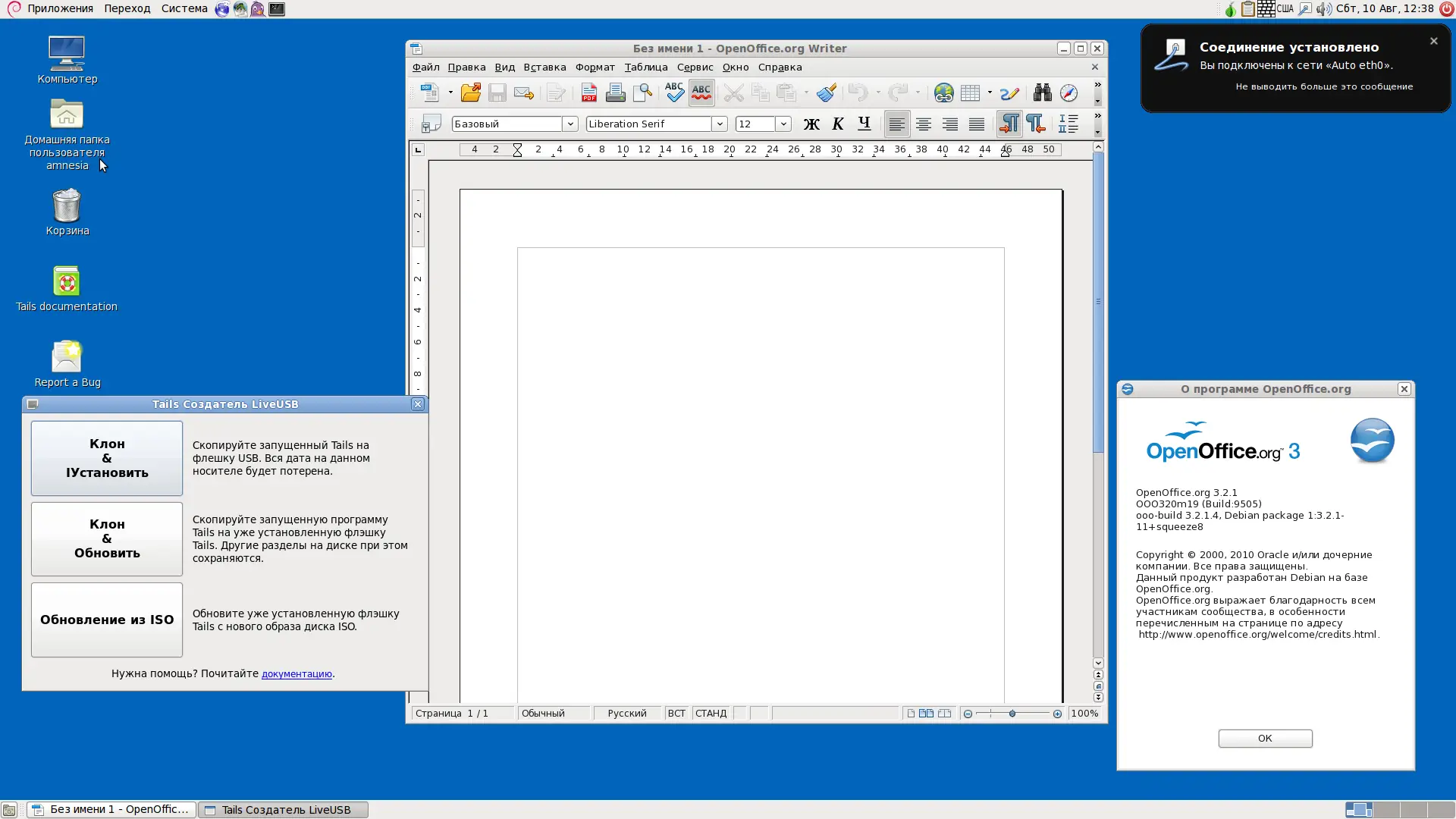 Для запуска Tails достаточно записать образ на USB-накопитель с помощью официального установщика и загрузиться с него. При первой загрузке появляется интерфейс Tails Greeter, где можно настроить подключение к Tor, активировать персистентное хранилище и включить дополнительные параметры безопасности. Система поддерживает ручное управление мак-адресами сетевых интерфейсов, что усиливает скрытность при подключении к сети.