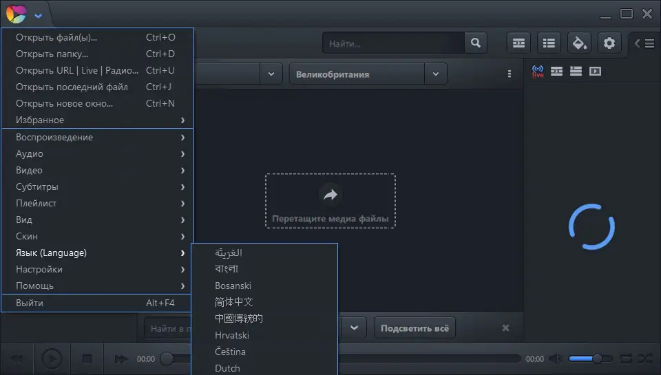 - Гибкие настройки воспроизведения, включая эквалайзер, тегирование файлов и управление субтитрами.