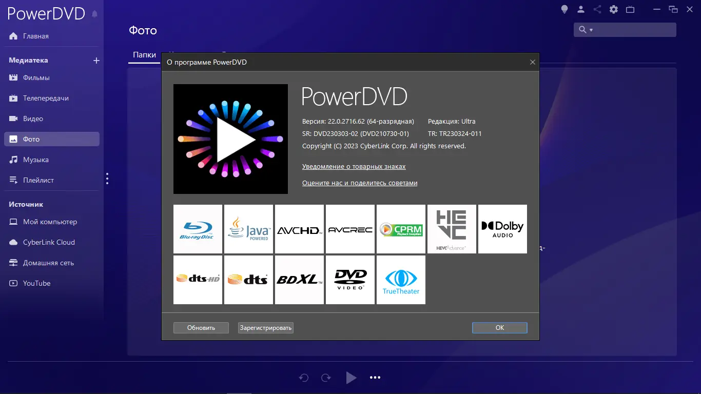 CyberLink PowerDVD — универсальный медиапроигрыватель, предназначенный для воспроизведения видео и аудио высокого качества на персональных компьютерах. Программа поддерживает широкий спектр форматов, включая DVD, Blu-ray, HD-видео и популярные цифровые контейнеры. Благодаря передовым технологиям обработки изображения и звука, обеспечивается кинотеатральный опыт прямо дома.
