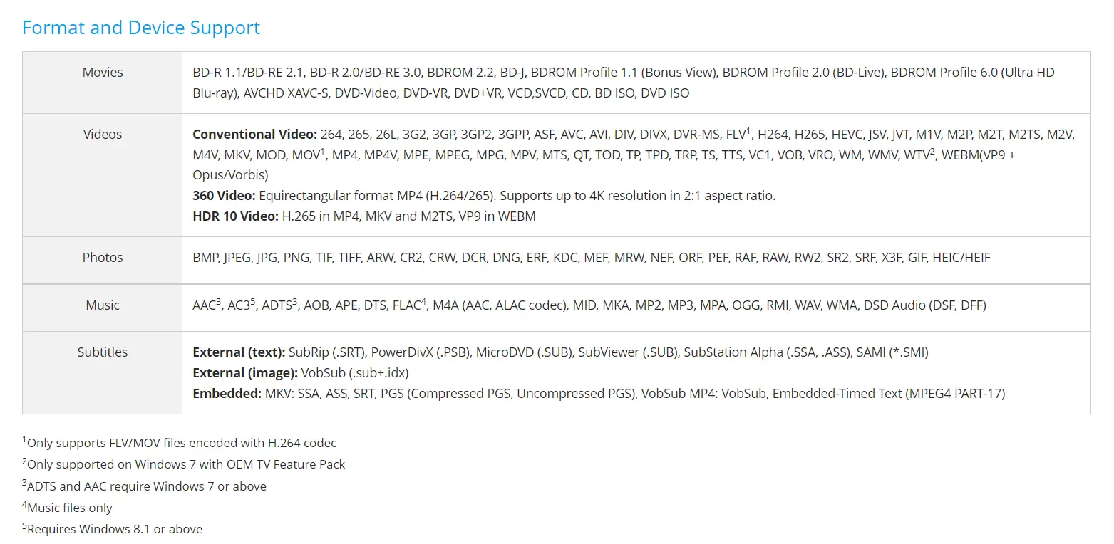 - Поддержка большого количества видео- и аудиоформатов, включая редкие и устаревшие