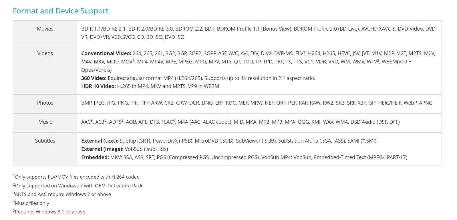 - Поддержка редких форматов и высоких разрешений, включая ultra-форматы
