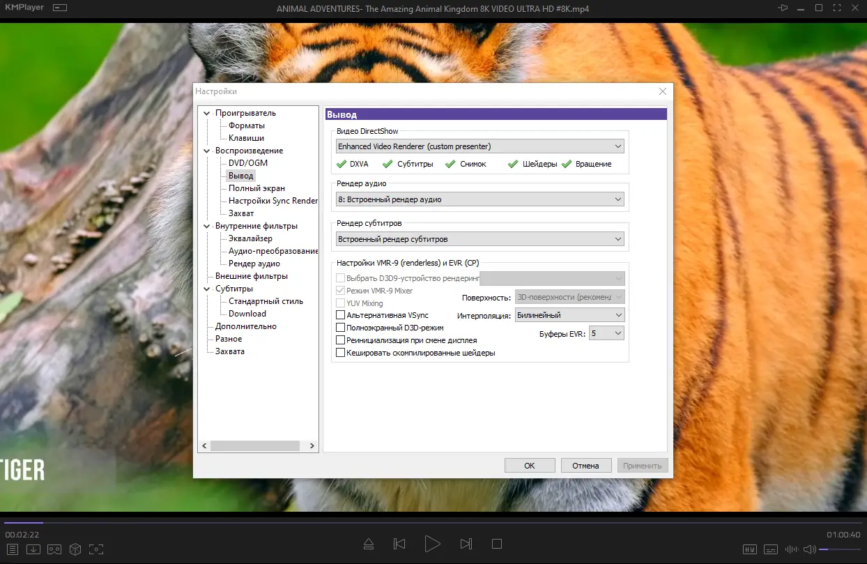 Использование KMPlayer не требует специальных знаний. После запуска достаточно перетащить нужный файл в окно программы или открыть его через меню «Файл». Интерфейс интуитивно понятен: основные элементы управления находятся в нижней части окна, а быстрые настройки доступны через правый клик. Для тонкой настройки изображения и звука предусмотрены встроенные эквалайзер, параметры цветокоррекции и выбор аудиодорожек. Пользователь может создавать плейлисты, управлять субтитрами и активировать визуализацию для музыки.