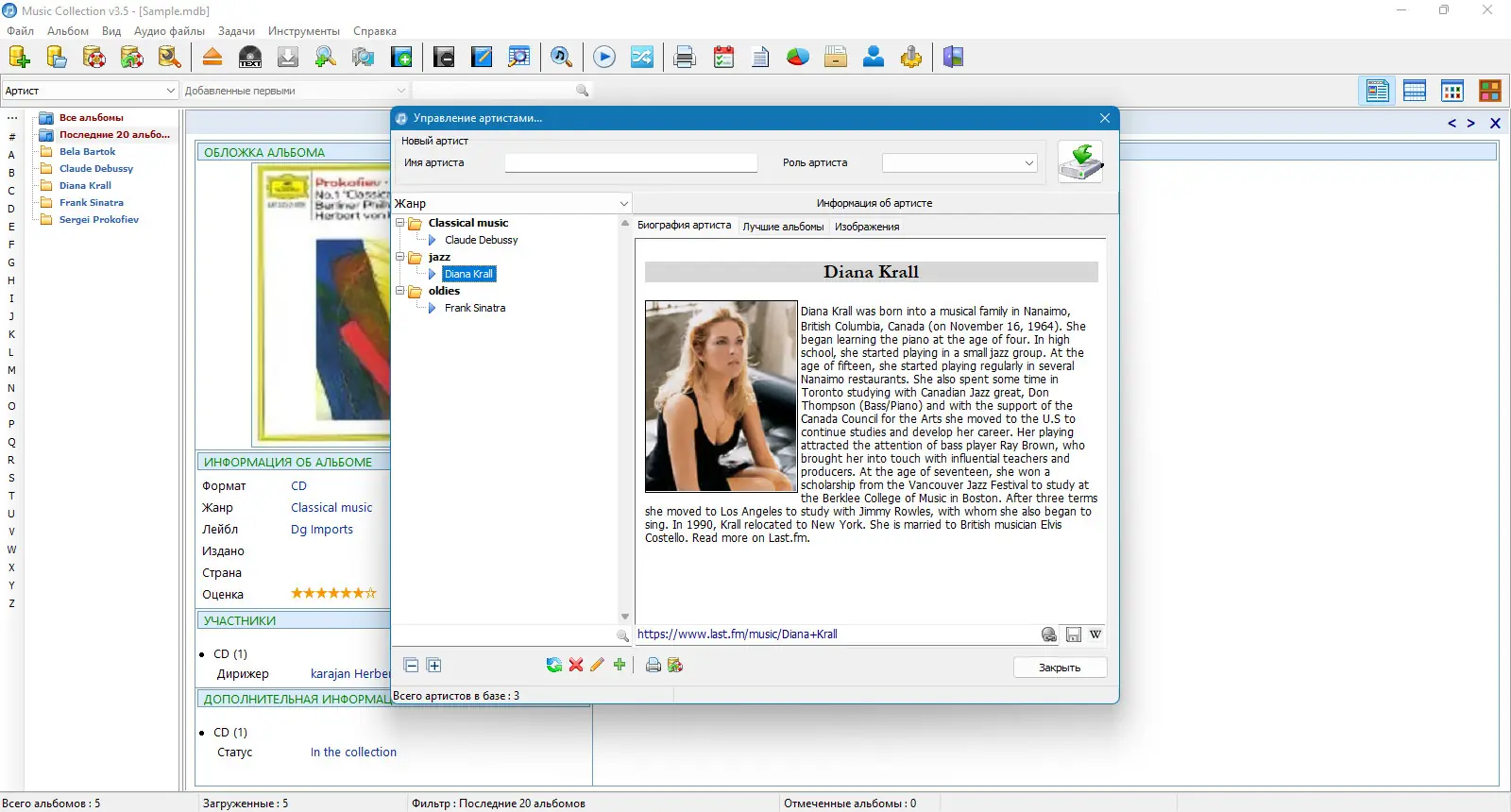 Работа с программой начинается с добавления музыкальных файлов или целых папок. После сканирования система автоматически определяет доступные метаданные, а при необходимости — загружает недостающие сведения из интернета. Пользователь может вручную корректировать информацию, добавлять обложки, редактировать жанры или указывать бонусные треки. В окне поиска теперь доступно прослушивание треков прямо во время фильтрации, что ускоряет навигацию по коллекции. Управление исполнителями и альбомами осуществляется через встроенные диалоги, в том числе из режима просмотра альбома.