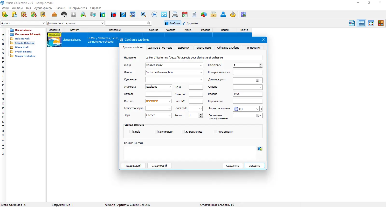 Программа позволяет не просто хранить музыку, а полноценно управлять ею, как в профессиональной медиатеке.
