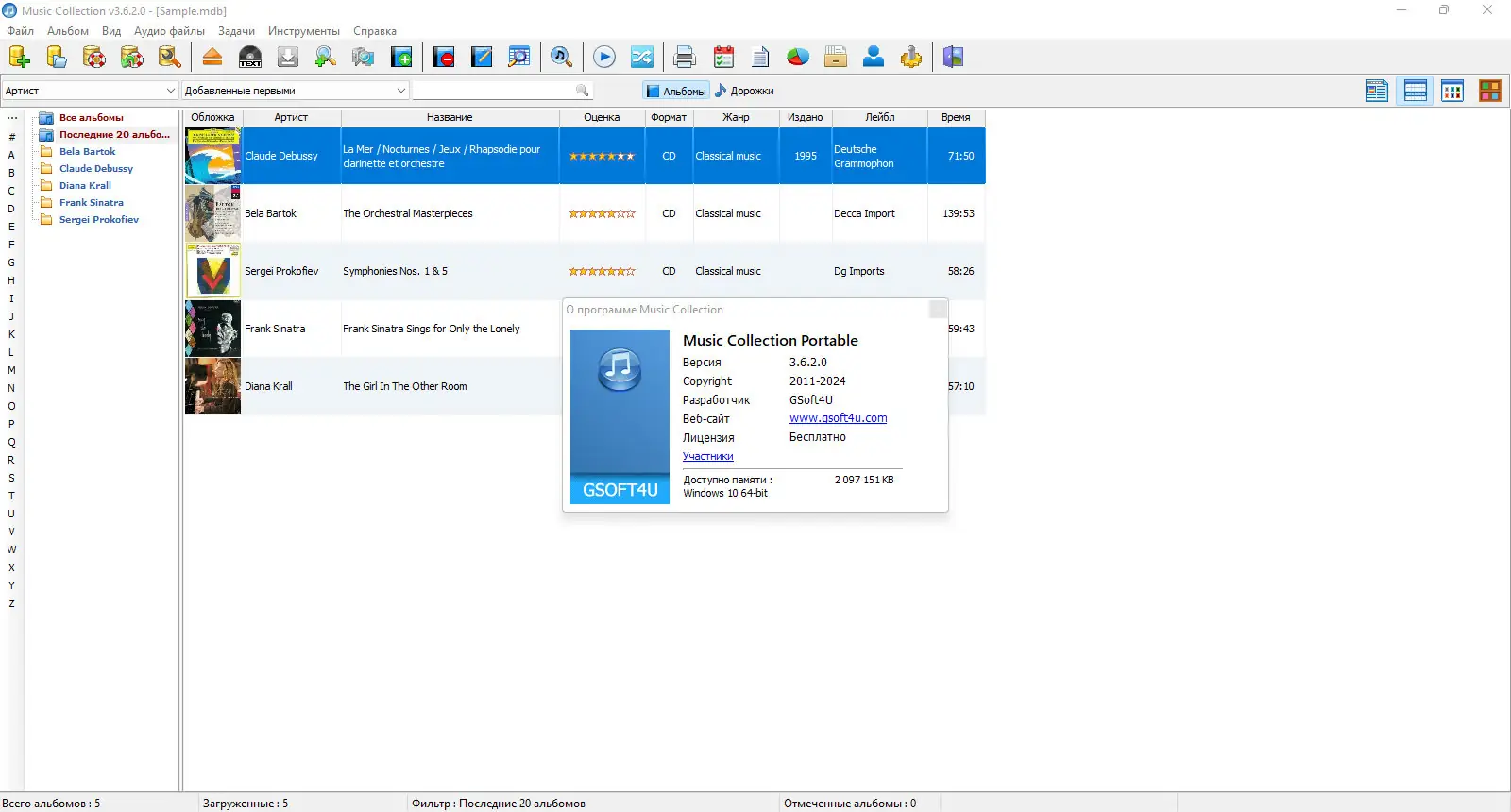 Music Collection представляет собой инструмент для организации цифровой музыкальной коллекции с расширенными возможностями каталогизации. Программа работает с базой данных в формате Microsoft Access, что обеспечивает стабильность хранения информации и возможность масштабирования. Пользователь может создавать неограниченное количество отдельных коллекций, каждую из которых можно настроить под конкретный жанр или тип носителя. Поддерживаются все распространённые форматы аудиофайлов, включая mp3, flac, wav, ogg и другие, с автоматическим определением тегов и метаданных.