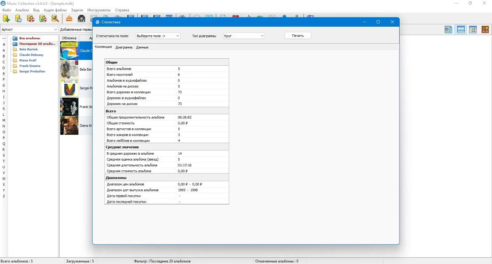 Music Collection — это удобное приложение для систематизации и управления аудиофайлами на компьютере. Программа помогает создавать музыкальные базы данных, автоматически извлекая информацию из файлов или загружая её из интернета. С её помощью можно быстро находить нужные треки, редактировать метаданные и визуально организовывать коллекции.