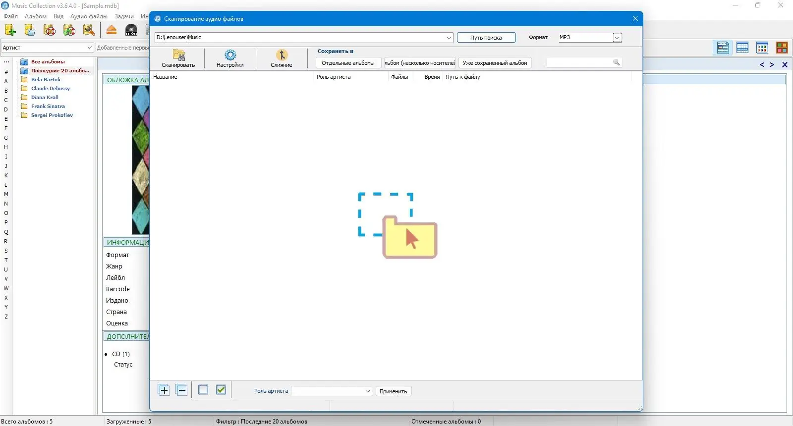 - Возможность ручного редактирования данных и добавления нескольких исполнителей к одному альбому