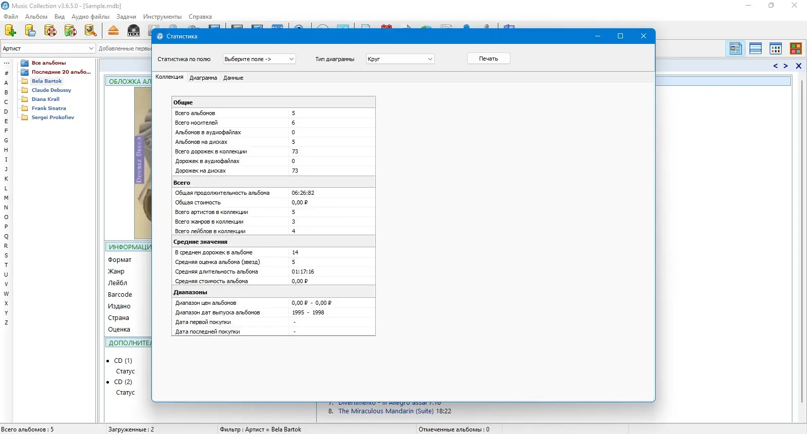 Music Collection — это удобное приложение для систематизации музыкальной библиотеки на компьютере, позволяющее организовать треки, альбомы и исполнителей с детальной информацией. Программа поддерживает автоматическое распознавание файлов, редактирование метаданных и поиск по множеству критериев. Благодаря интуитивному интерфейсу и расширенным возможностям, пользователь может легко управлять своей коллекцией и получать доступ к данным в любое время.