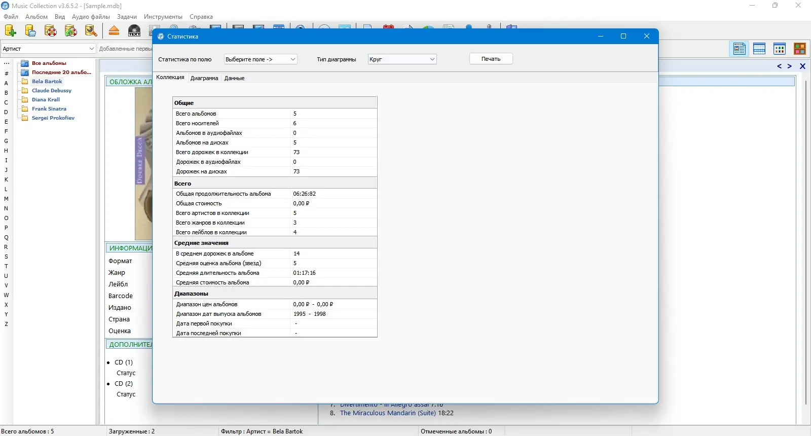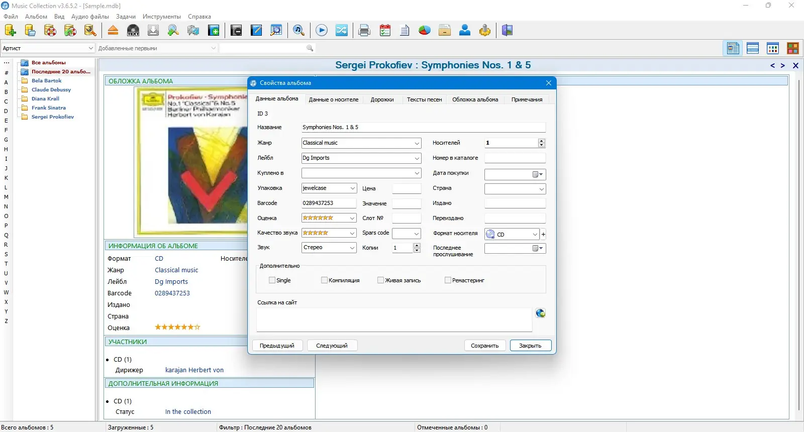 Music Collection представляет собой универсальное решение для тех, кто стремится привести свою музыкальную библиотеку в порядок. Программа поддерживает работу с различными форматами аудиофайлов и позволяет создавать неограниченное количество коллекций. Все данные хранятся в базе Microsoft Access, что обеспечивает надёжность и простоту резервного копирования.