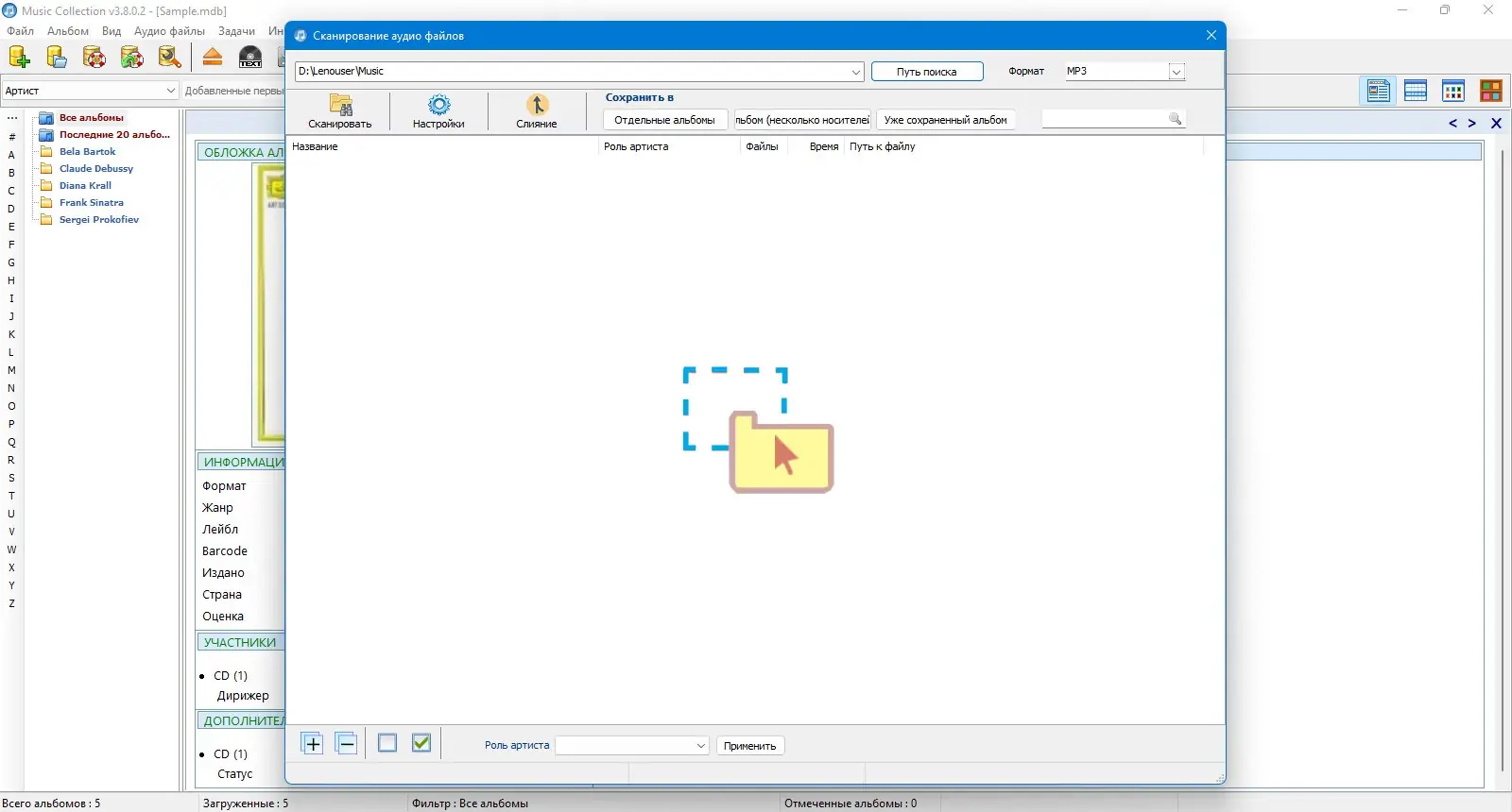 Работа с программой начинается с создания новой коллекции или открытия существующей. Добавление файлов происходит через проводник программы или перетаскиванием. После импорта аудиофайлов можно вручную редактировать теги или использовать автоматическое распознавание, которое подтягивает данные из интернета — название альбома, исполнителя, обложку, год выпуска и даже тексты песен. Для быстрого поиска применяются фильтры по любым полям базы. Также доступна функция печати отчётов, что может быть полезно для архивирования. Портативная версия позволяет запускать приложение с флешки без установки.