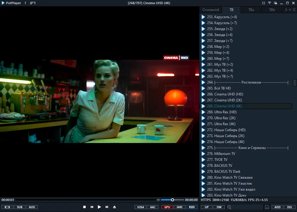Daum PotPlayer — универсальный мультимедийный проигрыватель, обеспечивающий высокое качество воспроизведения видео и аудио без необходимости установки дополнительных кодеков. Программа поддерживает широкий спектр форматов, включая редкие и современные контейнеры, и предлагает продвинутые настройки для улучшения визуального и звукового восприятия. Благодаря встроенным функциям, таким как коррекция цвета, масштабирование, субтитры и эффекты плавности, PotPlayer подходит как для повседневного просмотра, так и для профессионального использования.