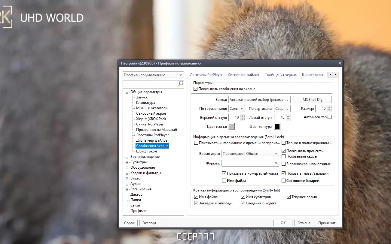 Интерфейс PotPlayer интуитивно понятен, но при этом предоставляет доступ к глубоким настройкам через контекстное меню и панель опций. Для быстрого доступа к функциям можно настроить горячие клавиши под свои потребности. Управление воспроизведением осуществляется как с клавиатуры, так и с помощью мыши — например, прокрутка колесиком изменяет громкость, а клик правой кнопкой вызывает расширенное меню. Для работы с несколькими мониторами реализована корректная обработка разрешений и ориентации, включая D3D11-рендеринг без обрезки кадра при переключении между экранами.