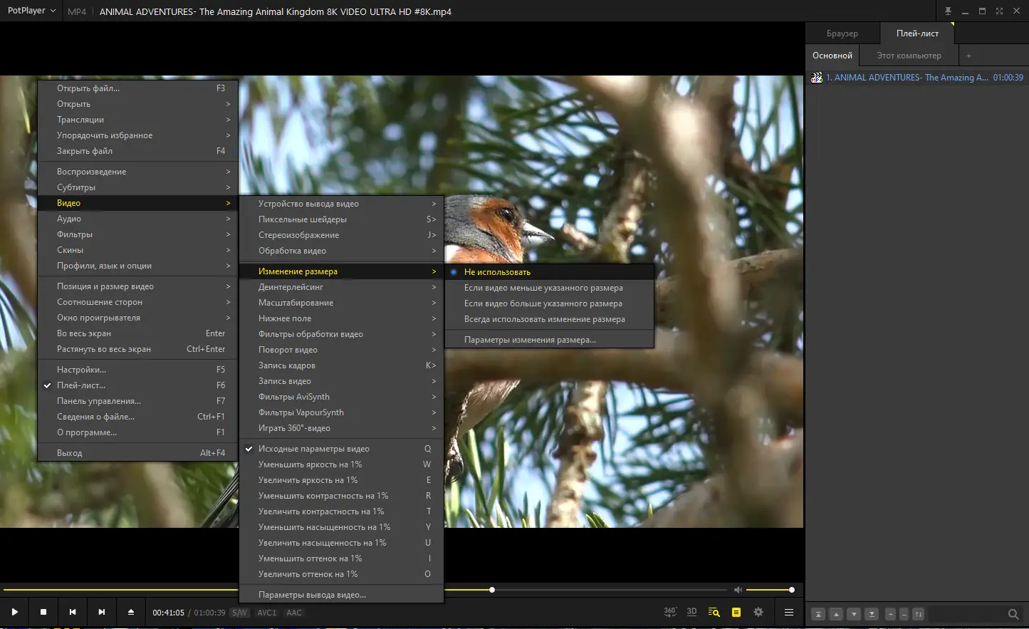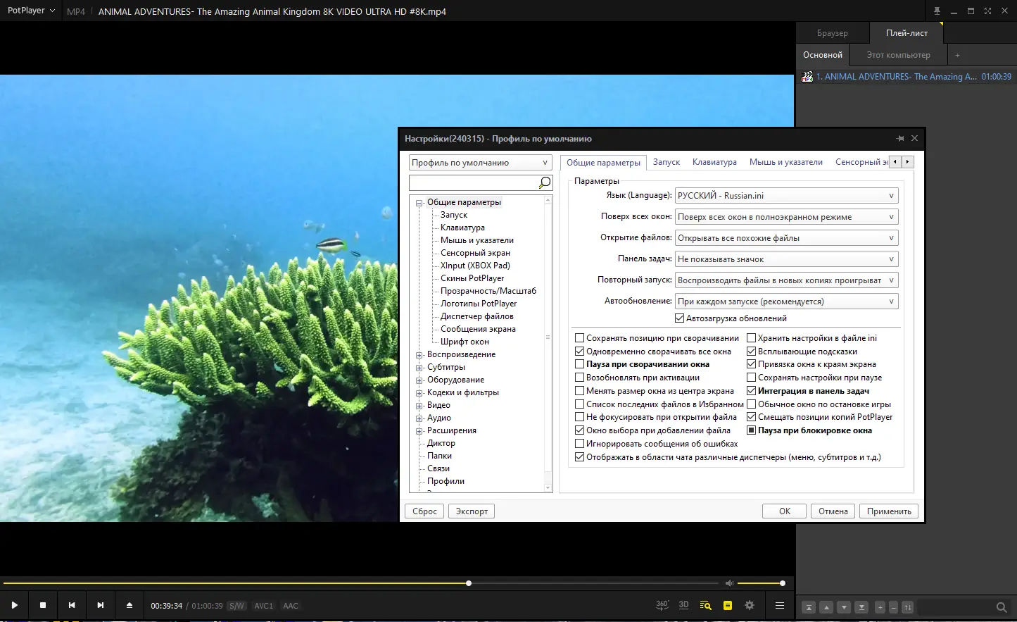 Запуск PotPlayer не требует сложной настройки — после установки можно сразу открывать файлы через контекстное меню или перетаскивание в окно плеера. Управление осуществляется с помощью мыши, клавиатуры или пульта дистанционного управления. Клавиши Num 1, 2, 4 и другие позволяют быстро изменять масштаб изображения, а сочетания с Ctrl помогают корректировать позицию видео на экране. Для любителей ускоренного просмотра доступна настройка скорости воспроизведения с точностью до 0.1x. Также можно настраивать поведение плеера при завершении воспроизведения, например, выключить компьютер в указанное время.