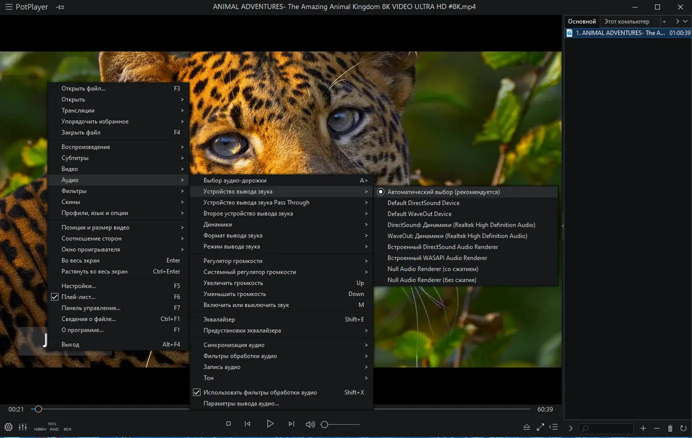 Пользование PotPlayer не требует глубоких технических знаний. После запуска достаточно перетащить файл в окно проигрывателя или открыть его через контекстное меню. Все основные функции доступны через контекстное меню настройки, где можно изменить качество рендеринга, выбрать аудиодорожку, добавить субтитры или настроить горячие клавиши. Скорость воспроизведения регулируется в диапазоне от 0.01x до 100x, что полезно при изучении материалов или ускоренном просмотре. Программа поддерживает создание плейлистов, таймер выключения компьютера и автоматическое возобновление воспроизведения.