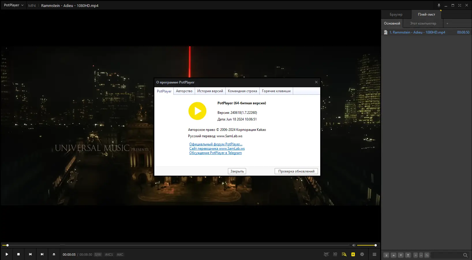 PotPlayer — мощный и гибкий мультимедийный проигрыватель, разработанный южнокорейской компанией Kakao, известной по созданию KMPlayer. Программа поддерживает широкий спектр аудио- и видеоформатов, включая редкие и специализированные контейнеры, и не требует установки дополнительных кодеков благодаря встроенной библиотеке. Интерфейс отличается минимализмом и функциональностью, а высокая степень настройки позволяет адаптировать плеер под индивидуальные предпочтения пользователя.