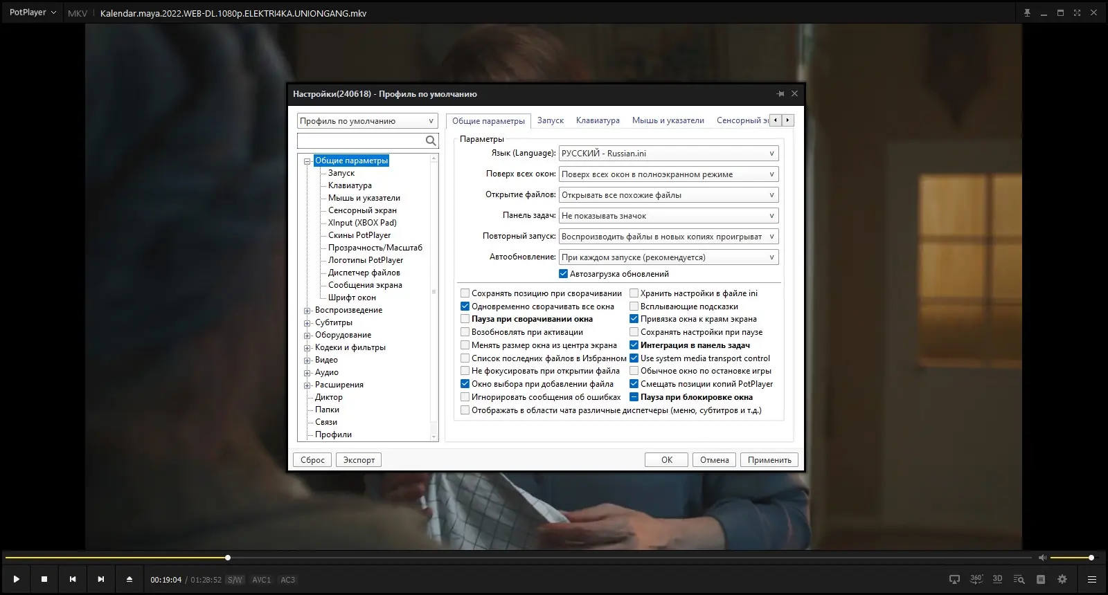 PotPlayer позволяет настроить практически каждый аспект воспроизведения — от поведения плеера при запуске до внешнего вида всплывающих уведомлений.