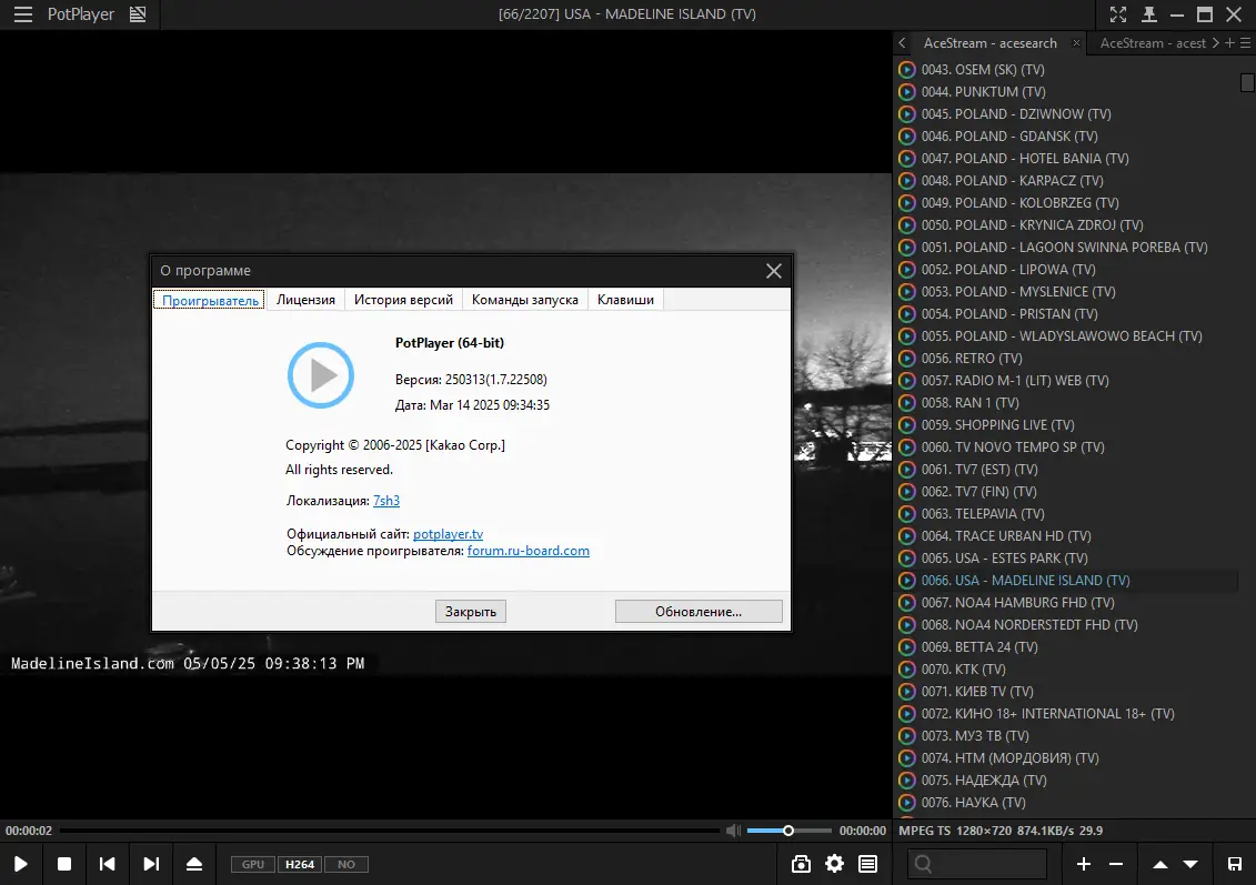 PotPlayer — мощный и гибкий мультимедийный проигрыватель, разработанный южнокорейской командой, известной по созданию KMPlayer. Программа поддерживает широкий спектр аудио- и видеоформатов, включая редкие и современные кодеки, обеспечивая высокое качество воспроизведения без необходимости установки дополнительных компонентов. Благодаря встроенным технологиям ускорения, таким как DXVA и поддержка 64-битных систем, PotPlayer стабильно работает даже с тяжёлыми файлами высокого разрешения.