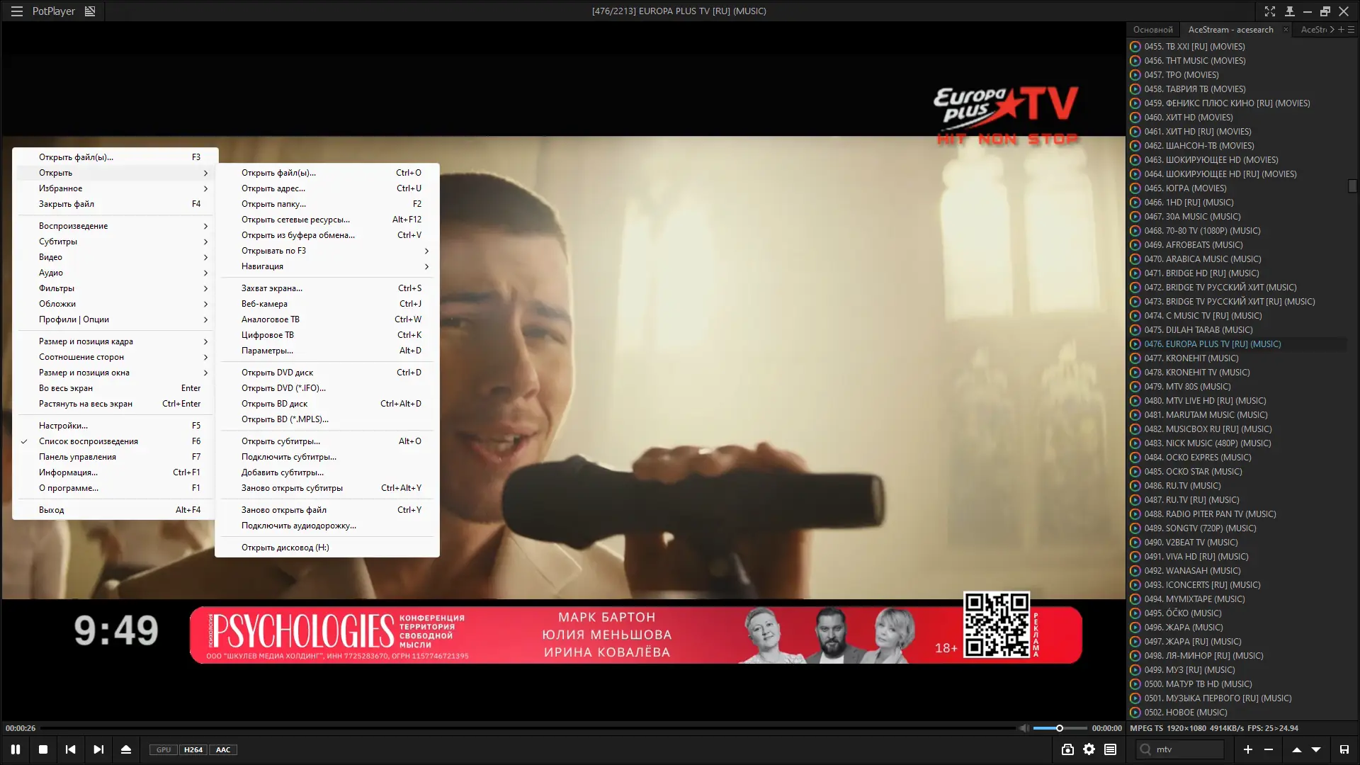 PotPlayer — мощный и гибкий мультимедийный проигрыватель, разработанный корейской студией Kakao, известной по созданию KMPlayer. Программа поддерживает широкий спектр аудио- и видеоформатов, обеспечивает высококачественное воспроизведение и предлагает продвинутые настройки для тонкой настройки изображения и звука. Благодаря встроенной поддержке кодеков, включая технологии DXVA и QuickSync, плеер эффективно использует ресурсы системы, минимизируя нагрузку на процессор.