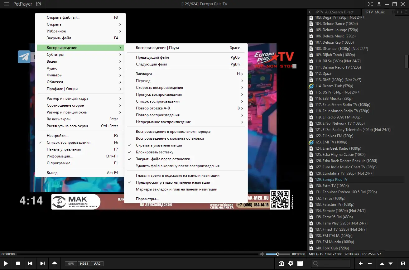 PotPlayer отличается высокой стабильностью и производительностью при воспроизведении медиафайлов любого формата. Программа поддерживает не только популярные контейнеры, такие как MP4, AVI, MKV, MOV, но и редкие форматы, включая FLV, RMVB, TS, M2TS и другие. Благодаря встроенным LAV-фильтрам и поддержке аппаратного декодирования через DXVA, QuickSync и CUDA, нагрузка на процессор снижается, а изображение остаётся чётким и плавным. Пользователь может воспроизводить даже повреждённые или не полностью загруженные файлы, что особенно полезно при работе с торрентами или прерванными загрузками.