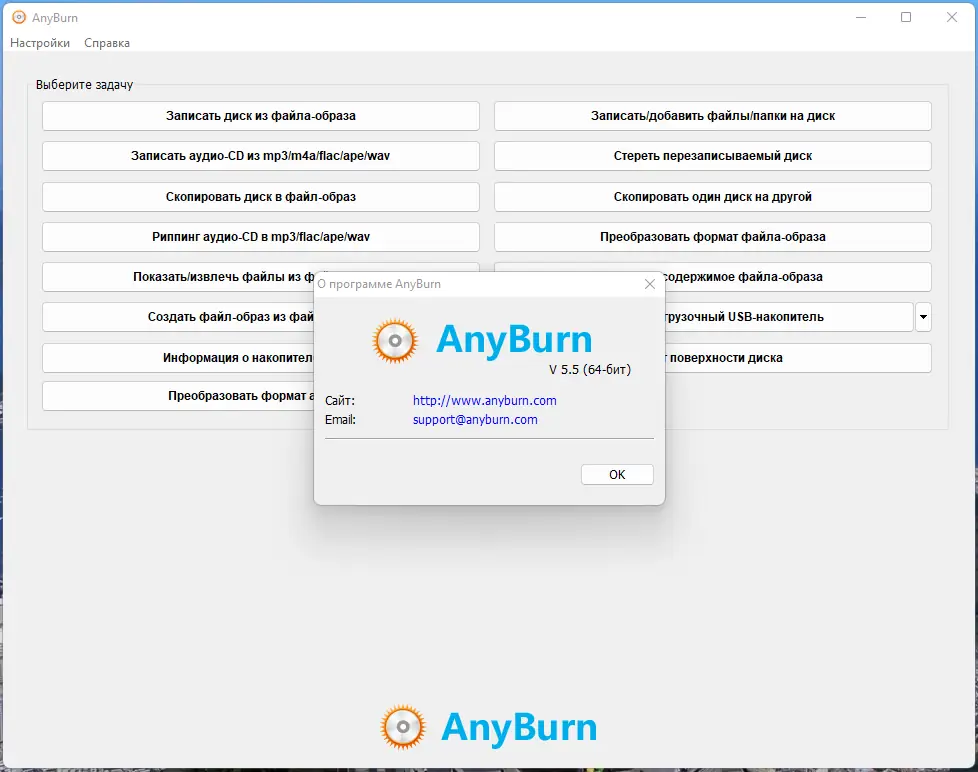 AnyBurn сочетает в себе простоту интерфейса и широкий функционал, что делает её универсальным решением для работы с оптическими дисками и образами.