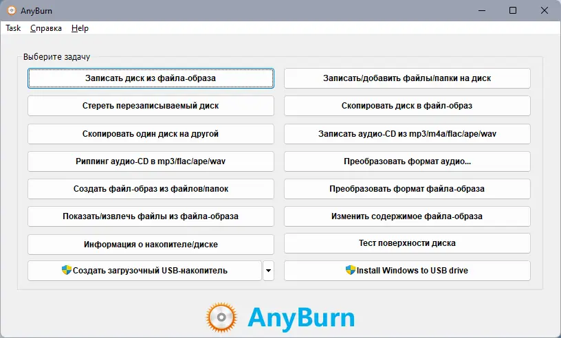 AnyBurn — компактная и бесплатная утилита для записи, копирования и создания образов дисков, включая CD, DVD и Blu-ray. Программа поддерживает широкий спектр задач: от записи аудиодисков до создания загрузочных носителей. Простой интерфейс и отсутствие лишних компонентов делают её удобным решением для повседневной работы с оптическими носителями.