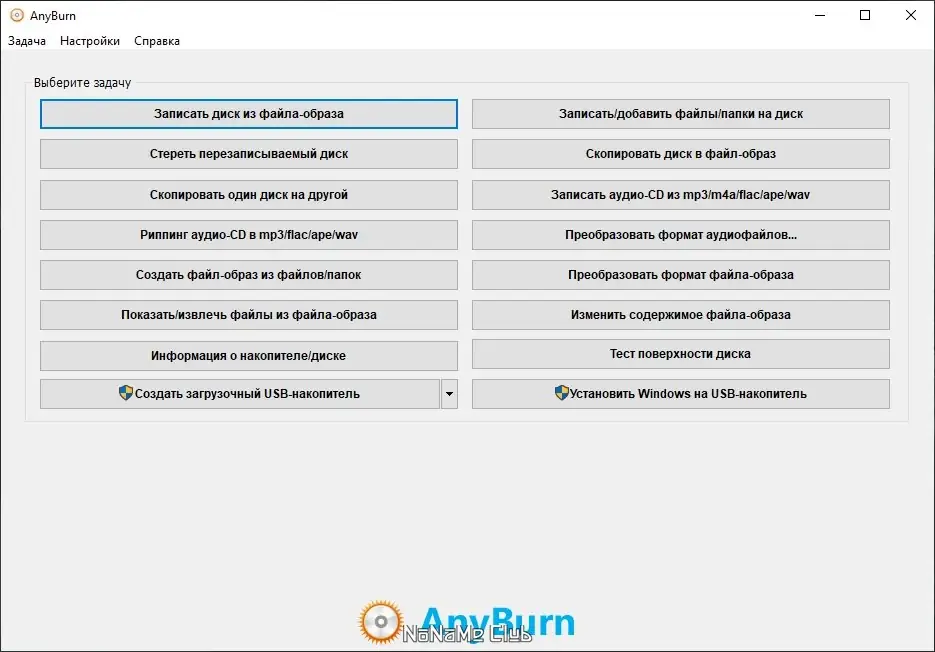 AnyBurn — это легковесное приложение, разработанное для эффективной работы с оптическими носителями и файлами образов. Программа поддерживает множество форматов, включая iso, и позволяет выполнять полный цикл операций: от записи файлов на диск до создания резервных копий в виде образов. Интерфейс построен по принципу задач — каждая вкладка соответствует определённому действию, что упрощает навигацию и минимизирует время на поиск нужной функции.