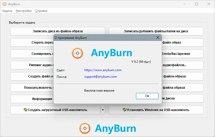 AnyBurn сочетает в себе простоту интерфейса и широкий функционал, что делает её подходящим решением для повседневных задач с дисками и образами.