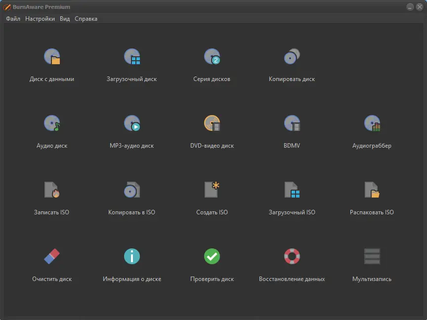 BurnAware — надёжное приложение для записи, копирования и работы с образами дисков CD, DVD, Blu-Ray и HD-DVD. Программа поддерживает широкий спектр операций, включая создание аудио- и видеодисков, запись с образов, клонирование и многое другое. Интерфейс интуитивно понятен, а функционал охватывает как базовые, так и продвинутые задачи.