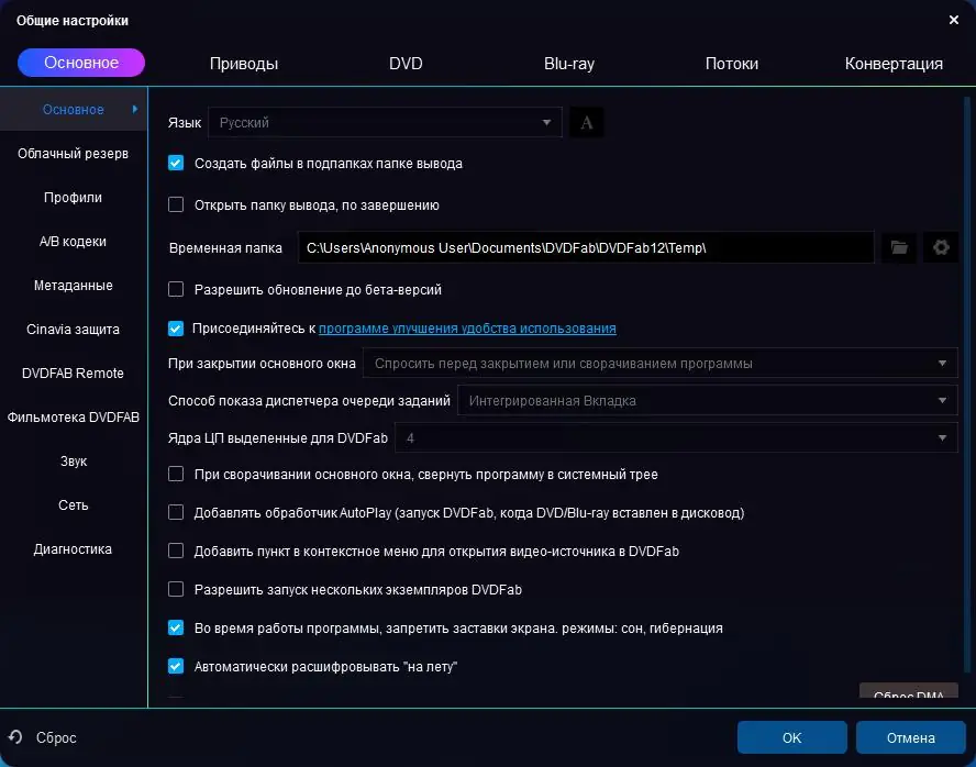 - Возможность создания пользовательских профилей конвертации делает DVDFab гибким решением для совместимости с редкими или устаревшими устройствами.