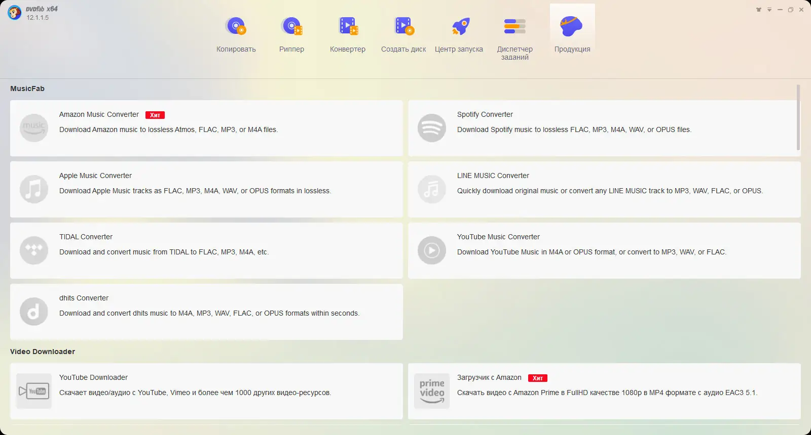 DVDFab — универсальный программный комплекс для копирования, конвертации и обработки DVD и Blu-ray дисков. Обеспечивает снятие всех видов защиты, сжатие контента, создание резервных копий и преобразование видео под различные устройства. Поддерживает широкий спектр форматов и предлагает интуитивный интерфейс на русском языке.